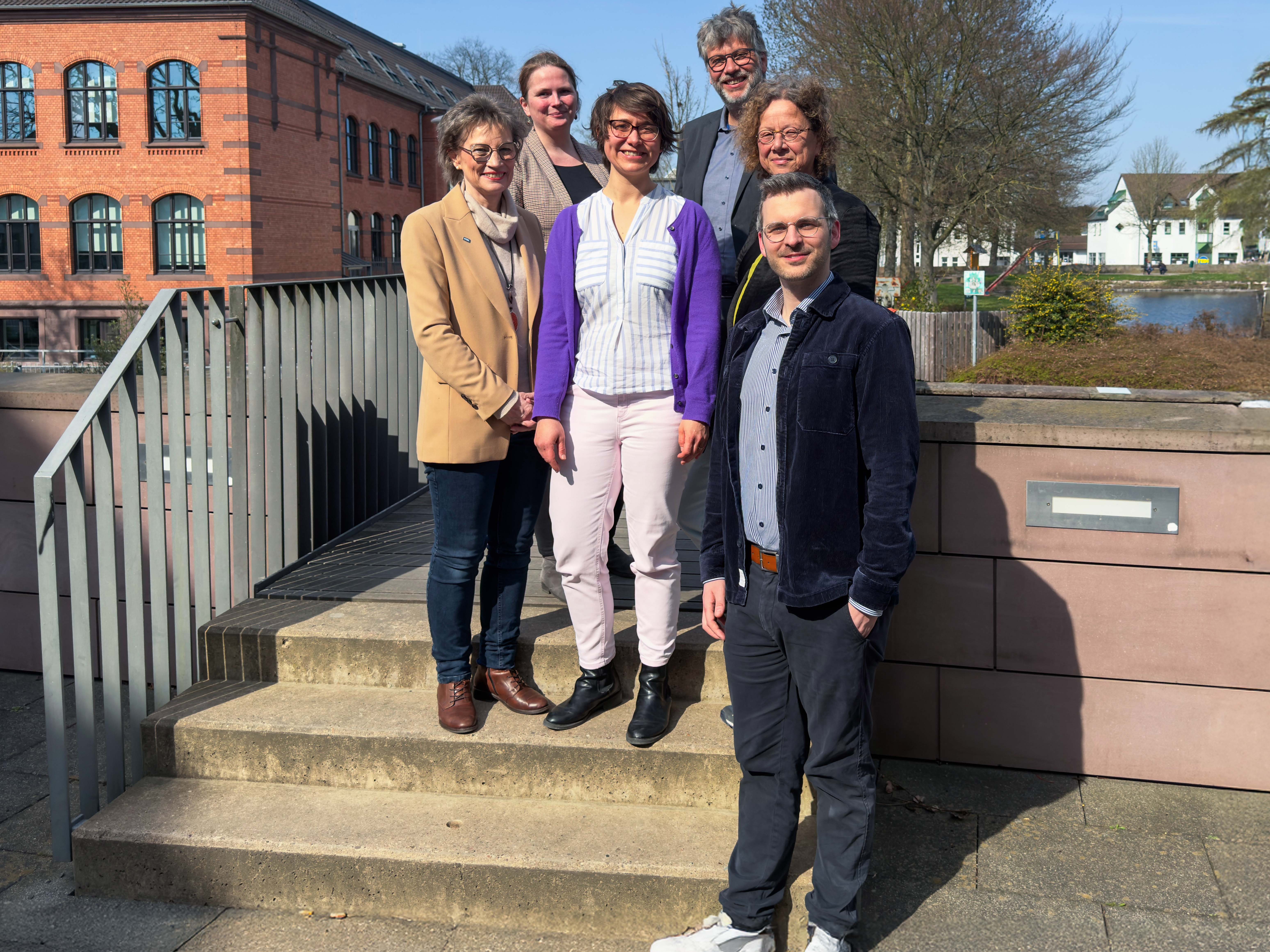 *1 v. l.: Prof. Katja Scholz-Bürig, Vizepräsidentin Studium und Lehre, Prof. Dr. Swantje Penke, Studiendekanin für den Bachelor- und den Masterstudiengang Soziale Arbeit berufsbegleitend, Prof. Dr. Viviane Schachler, Studiendekanin für den Bachelorstudiengang Soziale Arbeit, Dr. Marc Hudy, Präsident, Prof. Dr. Leonie Wagner, Dekanin der Fakultät Soziale Arbeit, Prof. Dr. Julian Sehmer, Prodekan der Fakultät Soziale Arbeit