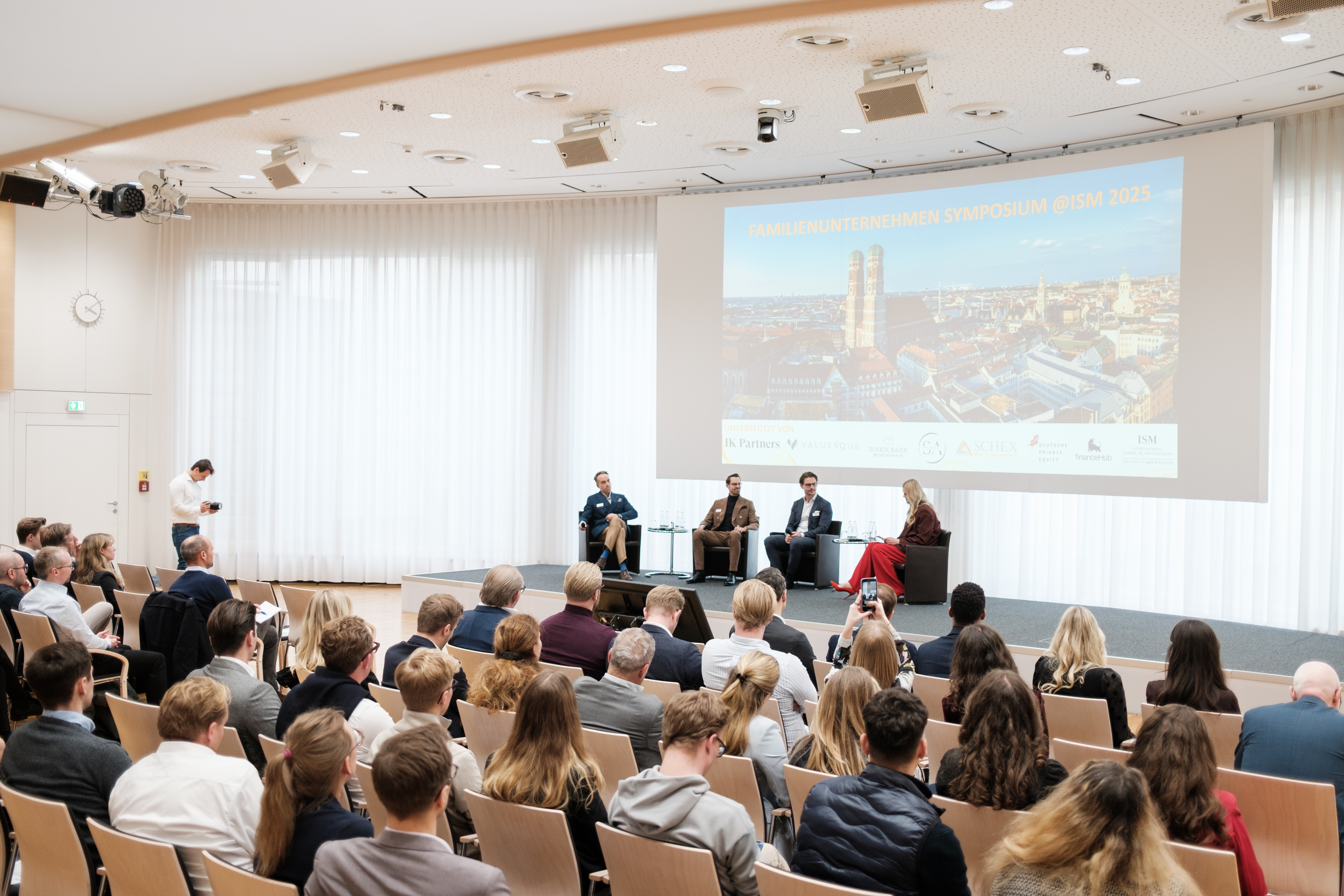 Neben den Organisatoren Daniel Schex, Geschäftsführer bei SCHEX Wealth Management und freier Dozent sowie Prof. Dr. Matthias Meitner und Prof. Dr. Maximilian Levasier, waren zahlreiche Gäste dabei: u.a. Helen Freund, Geschäftsführerin bei Freund GmbH und Alumna der ISM. Moderiert wurde die Veranstaltung von Alumna Julia Jaschinski.