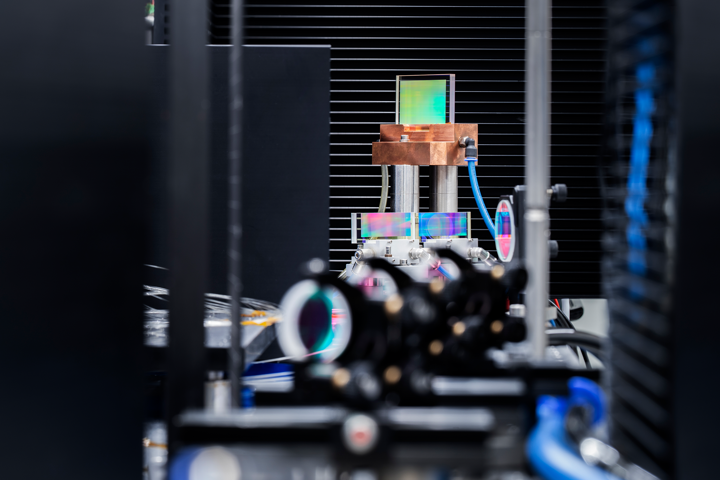 Another key component is a specially developed diffraction grating with an efficiency of over 95 percent and excellent thermal performance. "The combination grating is the heart of our system," explains Friedrich Möller, scientist in the Laser Technology department at Fraunhofer IOF. "Up to now, optical combining elements such as gratings and dichroic mirrors for wavelengths around 2 µm were only available for laser powers of a few hundred watts. However, our colleagues at the institute have developed a special diffraction grating that also works excellently in the multi-kW region under challenging parameters. It enables a low-loss beam combination with overall efficiencies greater than 90 percent and is the baseline for our next leaps in performance," says Möller.