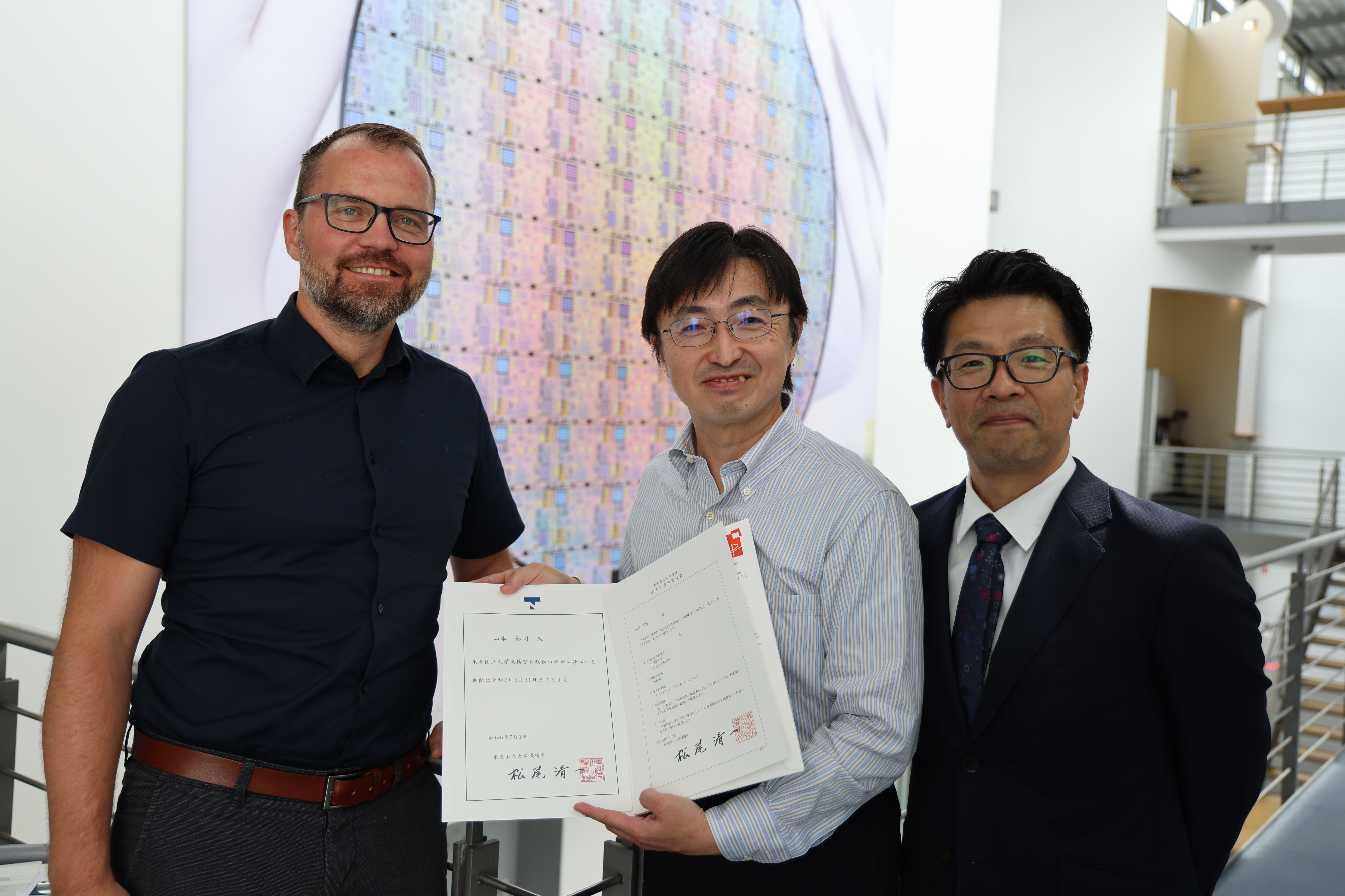Ein wichtiger Schritt zur Stärkung der Zusammenarbeit war die Ernennung von Dr. Yuji Yamamoto vom IHP zum Gastprofessor an der Universität Nagoya, wodurch der akademi-sche Austausch zwischen den beiden Einrichtungen weiter gestärkt wurde. Er wird dort die Entwicklung des wissenschaftlichen Nachwuchses unterstützen und Kurse in Halbleiter-technologie geben. Am IHP treibt Dr. Yamamoto die Entwicklung der SiGe-Epitaxie voran und genießt auch in der internationalen Gemeinschaft hohe Anerkennung. Neben der Ent-wicklung zahlreicher High-End-SiGe-Bauelemente (HBTs, Fotodioden usw.) hat er maßgeb-lich zur Prozessentwicklung beigetragen und kontinuierlich neue Themen und fortschrittli-che Bauelemente in Sub-10nm-Technologien erforscht.