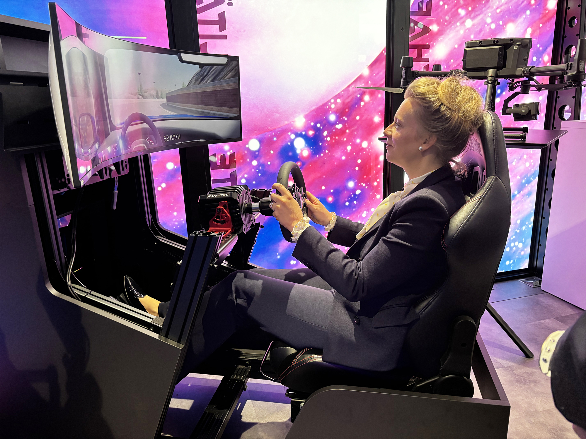 Die Ministerin für Kultur und Wissenschaft des Landes Nordrhein-Westfalen, Ina Brandes MdL, besuchte am Mittwoch, 16. April 2025 das sogenannte "Lab-on-Tour", einen Science Truck auf dem Campus Lippstadt der Hochschule Hamm-Lippstadt (HSHL). Das "Lab-on-Tour" ist Teil des 2023 gestarteten Projekts "Digitalise_SWF", welches im Rahmen der Bund-Länder-Initiative "Innovative Hochschule" finanziert wird. Ministerin Brandes erhielt vor Ort Einblicke in die Aktivitäten des Transferprojekts und konnte im Truck u.a. selbst in eine virtuelle Welt eintauchen und in einem Simulator ihr Fahrverhalten in kritischen Verkehrssituationen erproben.