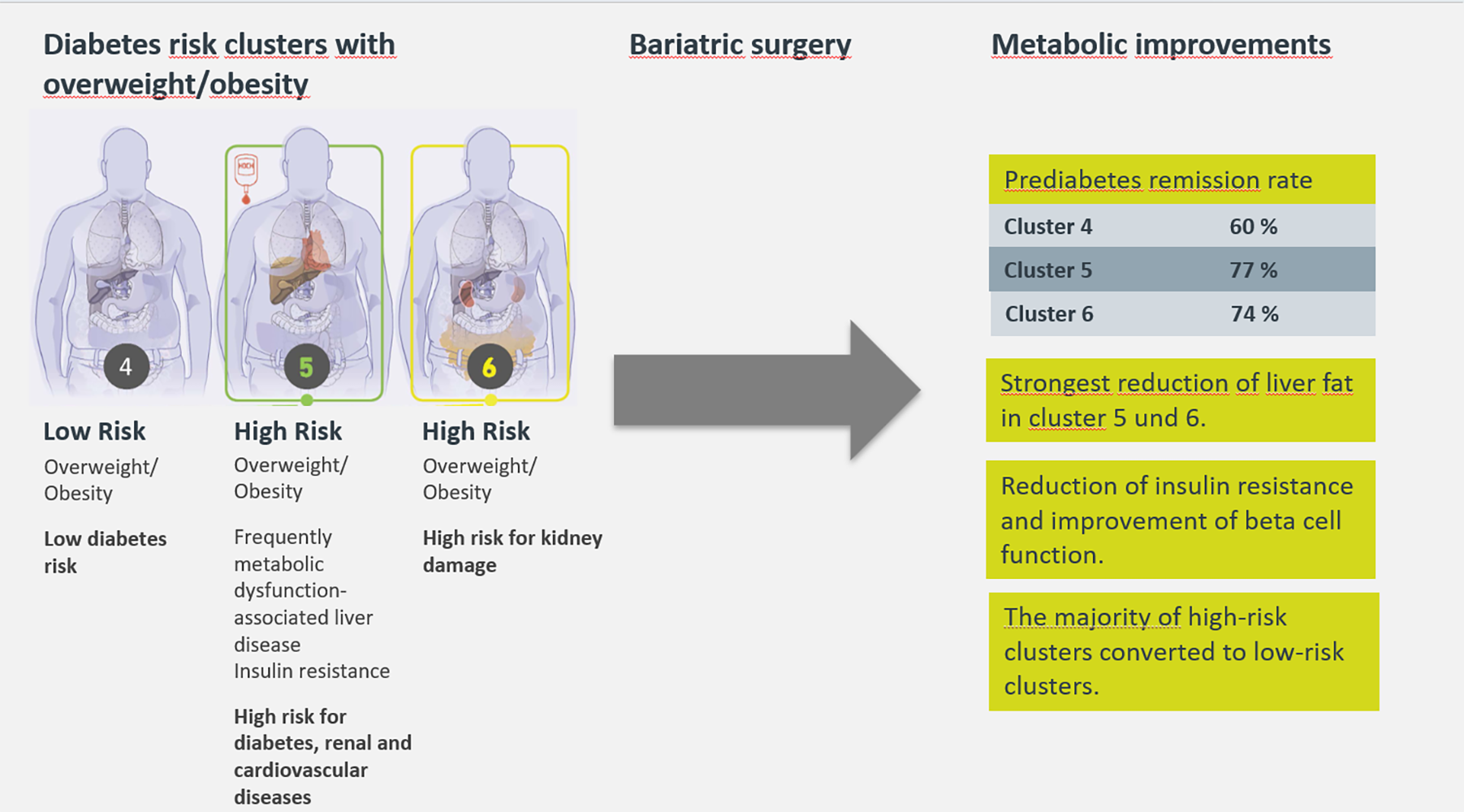 People with risk factors for type 2 diabetes have a varying risk of developing type 2 diabetes as well as complications. Researchers from the Institute of Diabetes Research and Metabolic Diseases of Helmholtz Munich at the Eberhard Karls University of Tübingen, the University Hospital of Tübingen, the German Center for Diabetes Research (DZD), as well as the Universities of Lille and Rome investigated the extent to which the different subtypes benefit from bariatric surgery. The results show that the novel classification of diabetes risk subtypes can help to identify people who benefit particularly greatly from bariatric surgery. This can be an important step towards precision medicine.