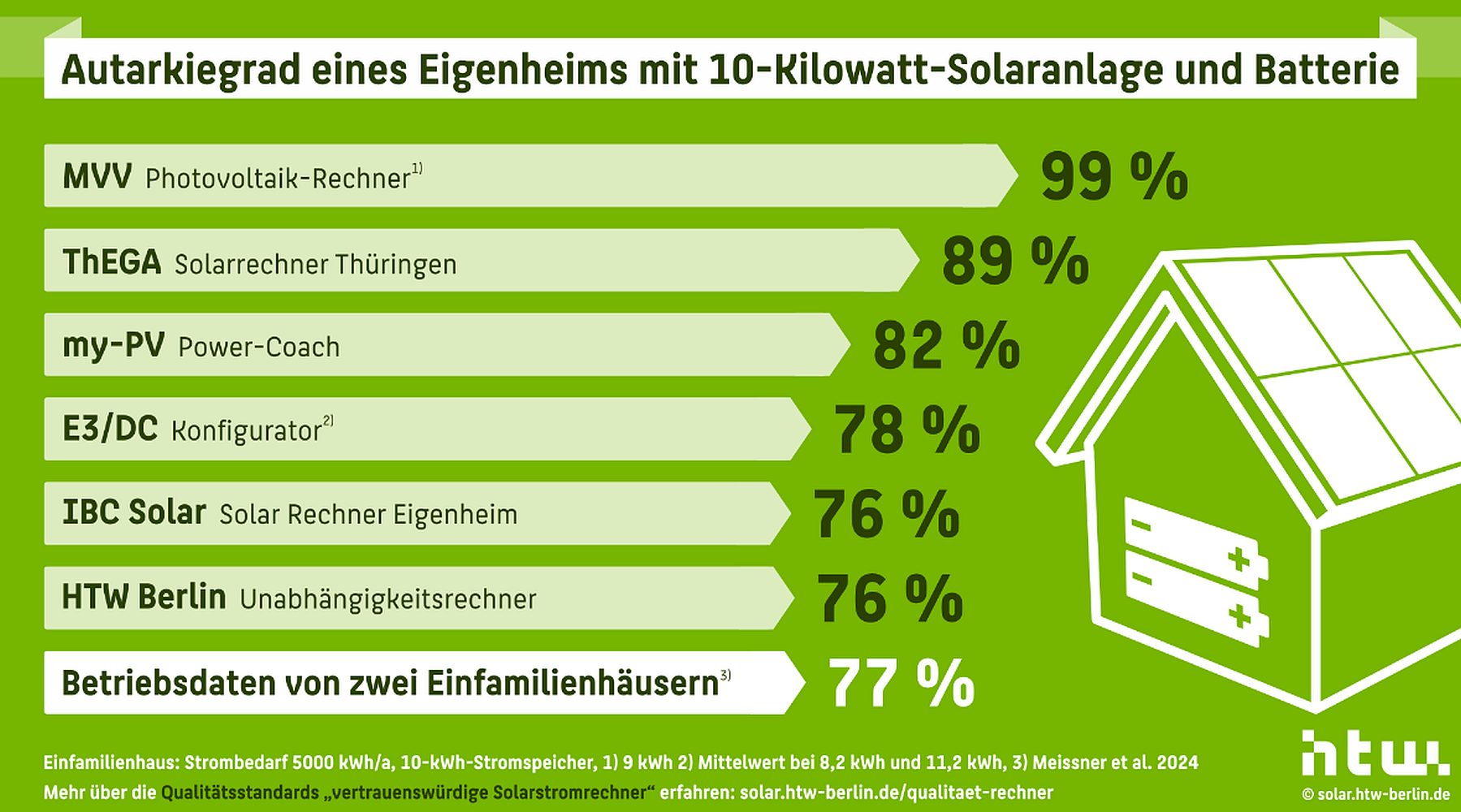In den vergangenen Jahren ist die Anzahl der Online-Tools, die zweifelhafte Berechnungsergebnisse liefern, gestiegen. Die Ergebnisse von Solarstromrechnern beeinflussen häufig Kaufentscheidungsprozesse von Privatpersonen, die sich für eine Photovoltaikanlage und einen Batteriespeicher interessieren. Eine Analyse der HTW Berlin zeigt: Selbst unter identischen Rahmenbedingungen variieren die berechneten Autarkiegrade je nach Online-Tool um mehr als 20 Prozentpunkte. Eines der untersuchten Tools ermittelte einen Autarkiegrad von 99 Prozent für ein Einfamilienhaus mit einer 10-Kilowatt-Photovoltaikanlage und einem 9-Kilowattstunden-Stromspeicher. „Solche utopischen Werte lassen sich in der Praxis nicht erreichen und wecken zu hohe Erwartungen an die eigene Solaranlage“, resümiert Michaela Zoll, wissenschaftliche Mitarbeiterin in der Forschungsgruppe Solarspeichersysteme der HTW Berlin.