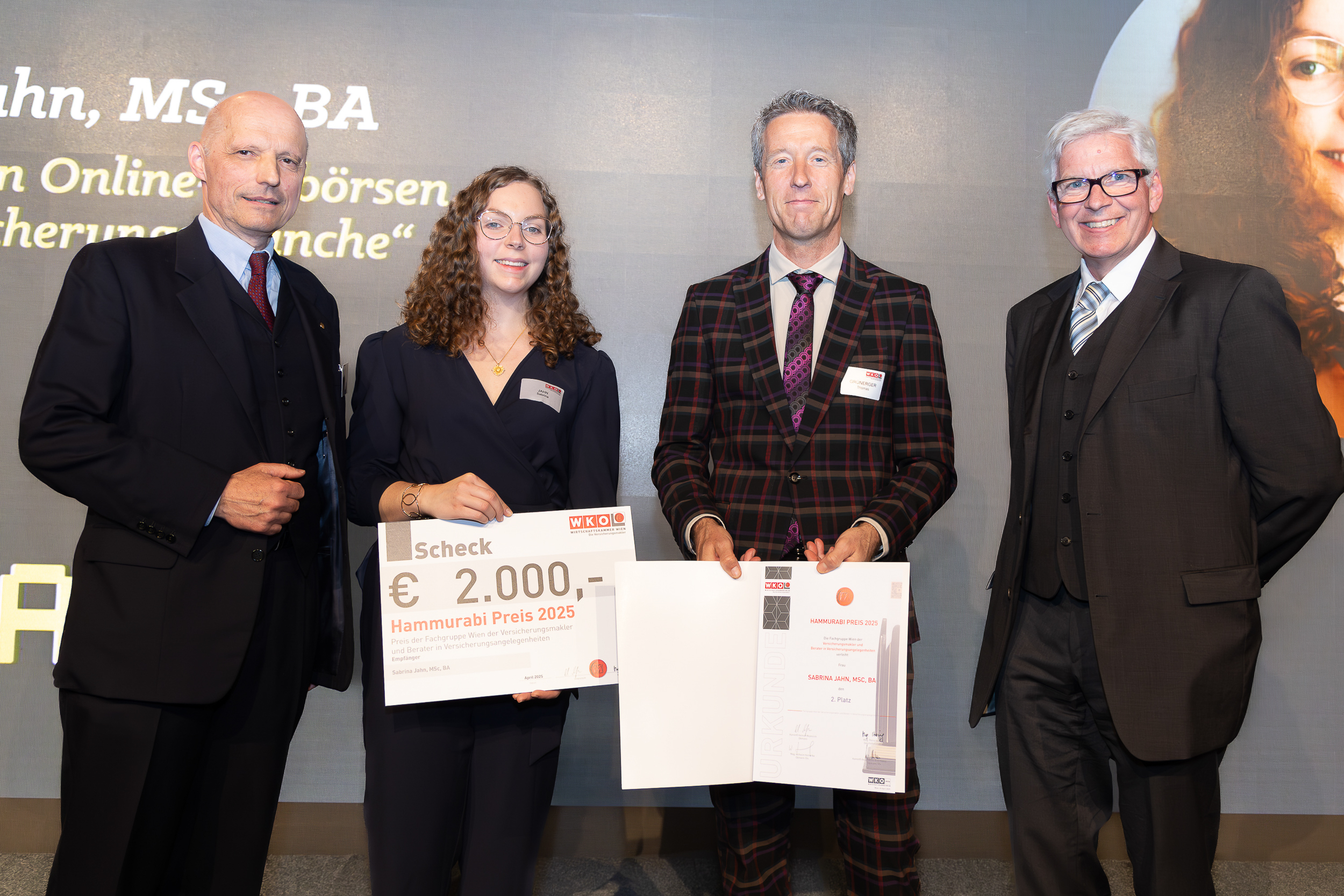 Für diese Bachelorarbeit wurde Sabrina Jahn mit dem 2. Platz des Hammurabi-Wissenschaftspreises ausgezeichnet. Der Preis wird von der Wirtschaftsuniversität Wien und den Wiener Versicherungsmaklern verliehen – überreicht wurde er beim 22. Informationstag der Versicherungsmakler der Wirtschaftskammer Wien im Palais Ferstel vor rund 500 Gästen.