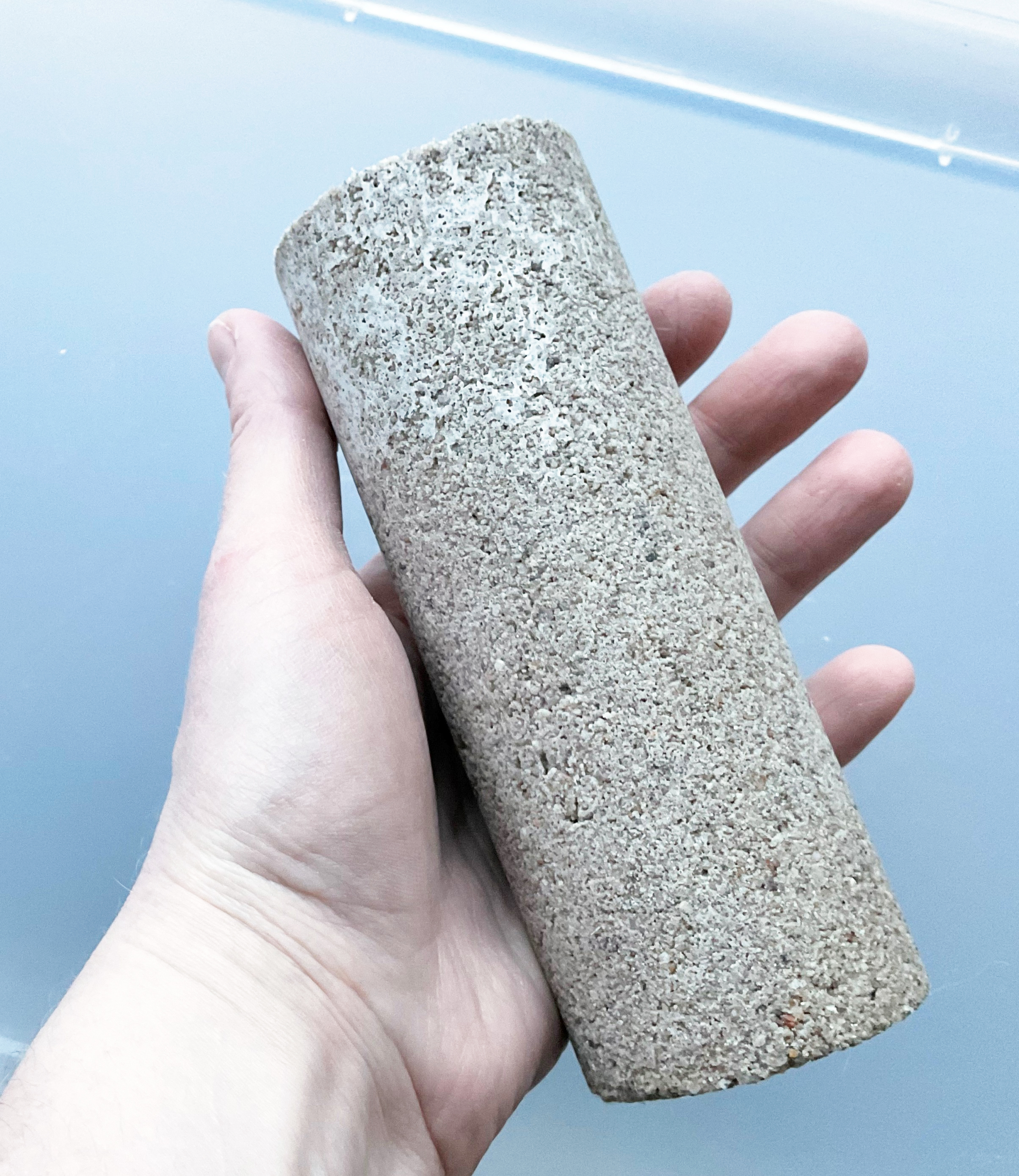 Die ersten hergestellten Proben weisen vielversprechende Materialeigenschaften auf. Mit technischem Harnstoff hat das Team eine Druckfestigkeit von über 50 Megapascal erreicht - deutlich mehr als bei bisher verfügbaren Baustoffen auf Basis von Biomineralisierung. Mit Harnstoff in synthetisch stabilisiertem Urin gelang die Marke von 20 Megapascal. Mit echtem, menschlichem Urin lag der Wert bei fünf Megapascal, da Bakterien nicht über die volle Biomineralisierungszeit von drei Tagen aktiv bleiben. Dies gilt es nun zu verbessern. Eine Festigkeit des biomineralisierten Materials im Bereich von 30 bis 40 Megapascal wäre ausreichend für das Mauerwerk von zwei- bis dreigeschossigen Gebäuden, rechnen die Wissenschaftler*innen vor. Momentan prüfen sie mittels Frost-Tau-Versuchen, ob das Material im Außenbereich eingesetzt werden kann.