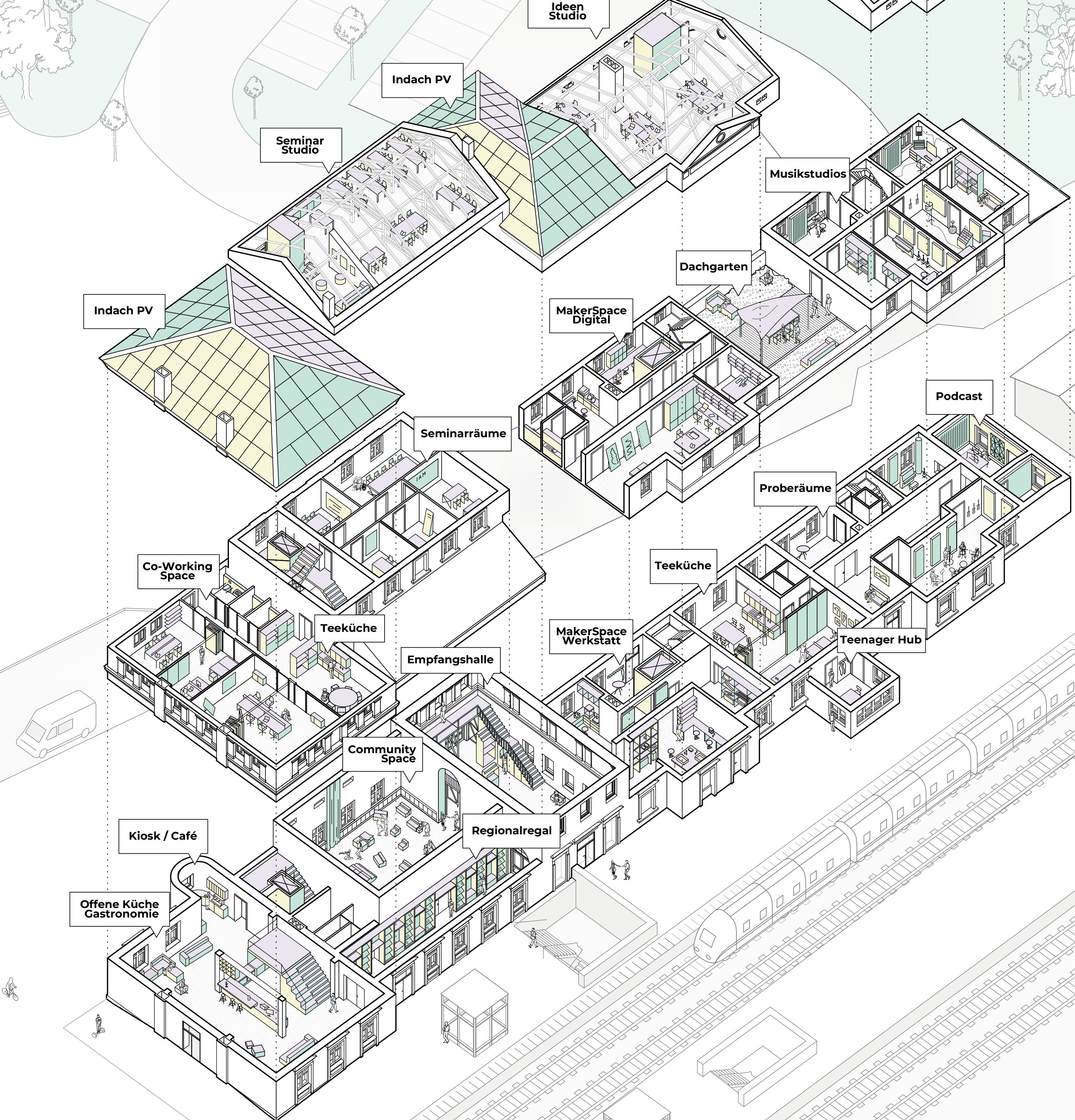 Wie können verlassene Bahnhofsgebäude in Brandenburg zu lebendigen Orten des Austauschs und der Gemeinschaft werden? Mit dieser Frage haben sich die Architekturstudent*innen Therese Rackwitz und Wojtek Szczepanik in ihrer Masterarbeit an der TU Berlin auseinandergesetzt – und ein zukunftsweisendes Konzept erarbeitet.