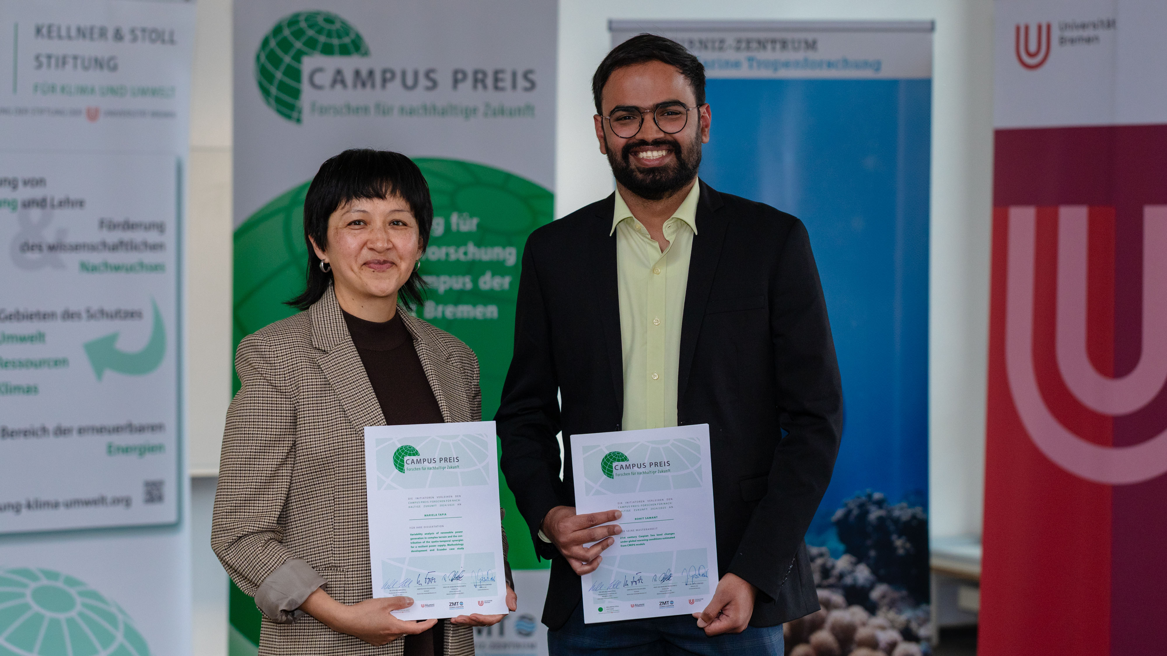Der „CAMPUS PREIS: Forschen für nachhaltige Zukunft“ zeichnet in diesem Jahr drei Arbeiten aus. In ihrer Dissertation beschäftigt sich Mariela Tapia mit erneuerbaren Energien in Ecuador. Um das gefährdete Ökosystem des Kaspischen Meeres geht es in der Masterarbeit von Rohit Samant. Niccolò Orlandi untersucht für seinen Masterabschluss die Möglichkeiten nachhaltiger Wirtschaft in Tobago. Die mit insgesamt 3.000 Euro dotierten Auszeichnungen wurden am 7. Mai an der Universität Bremen verliehen.