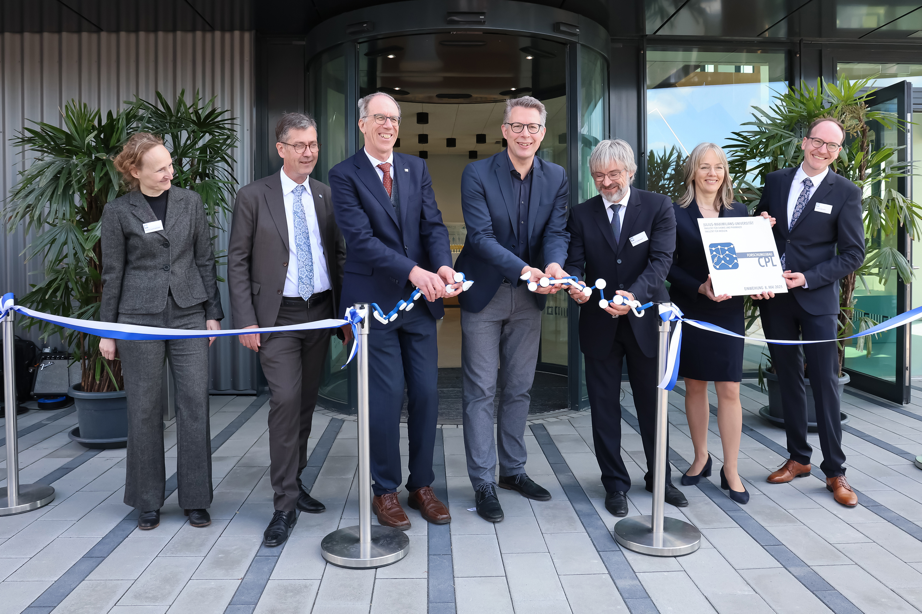 „Doppelpack in Würzburg! Wir eröffnen das neue Praktikumsgebäude und den Forschungsbau CPL für die Chemie der JMU. In Summe wurden rund 95 Millionen Euro investiert – und das ist nur der vorläufige Höhepunkt einer ganzen Reihe von Baumaßnahmen für die exzellente Würzburger Chemie. Die JMU hat in der Chemie und Pharmazie ein extrem starkes Profil entwickelt – in beiden Disziplinen strahlt sie weit über Bayern hinaus. Das zeigt sich gerade beim Forschungsbau für das CPL. Denn den gibt es nicht frei Haus, den muss man sich hart verdienen – ein Beleg für die tolle Arbeit unserer gefühlten Exzellenzuniversität.“