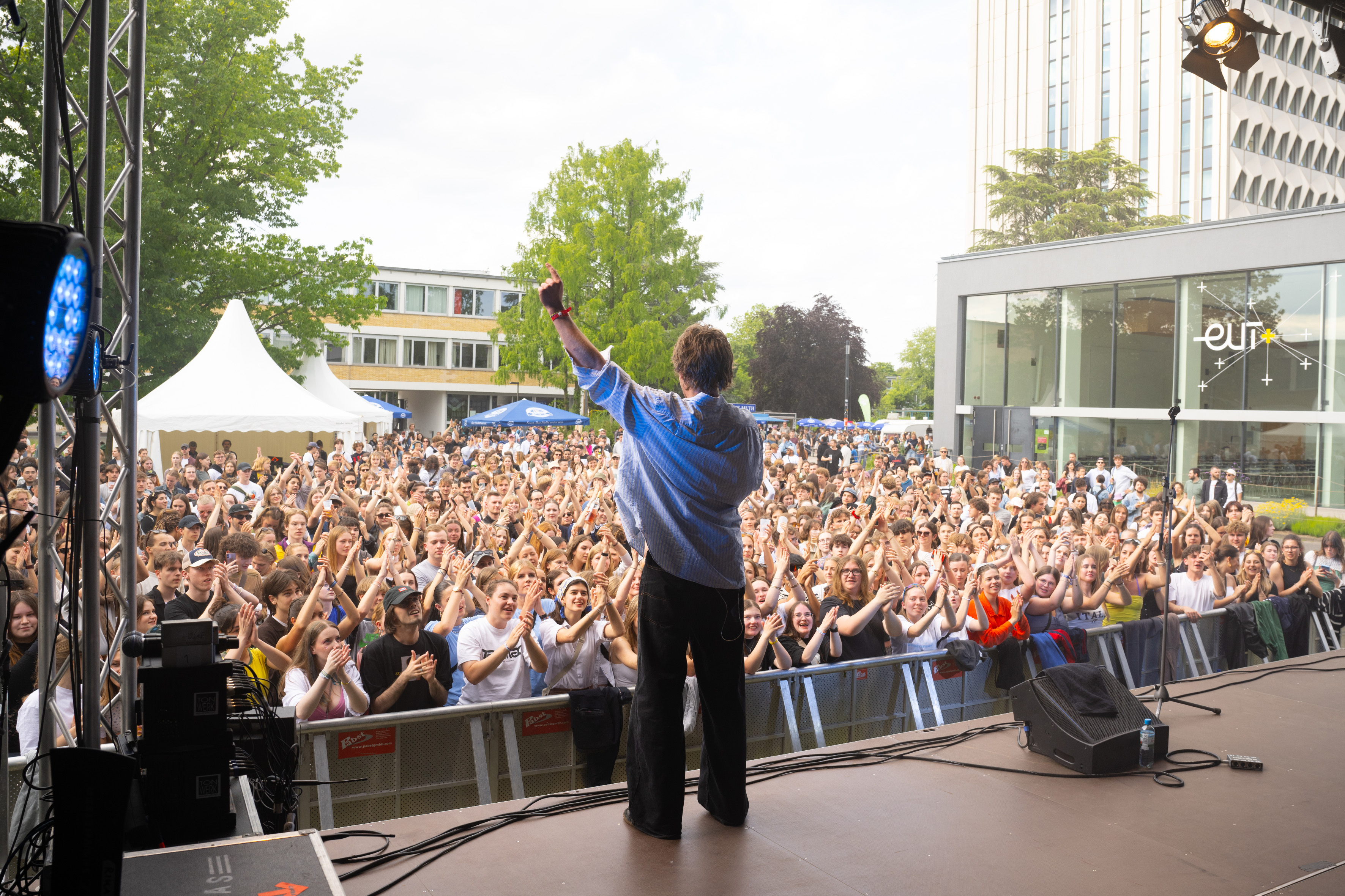 Auf der Bühne des h_da Campusfestivals spielen vier Live-Acts: die Schweizer Indie-Folk-Band The Gardener & The Tree, Yu, der Rock, Pop und Rap verbindet und über Tiktok bekannt wurde, die Elektro-Pop-Musikerin Jenny Thiele und die fünfköpfige Baba Shrimp Gang. Sie spielen einen Indie-Pop-Mix, drei der Bandmitglieder haben einen direkten h_da Bezug: Sie studieren Sound and Music Production.