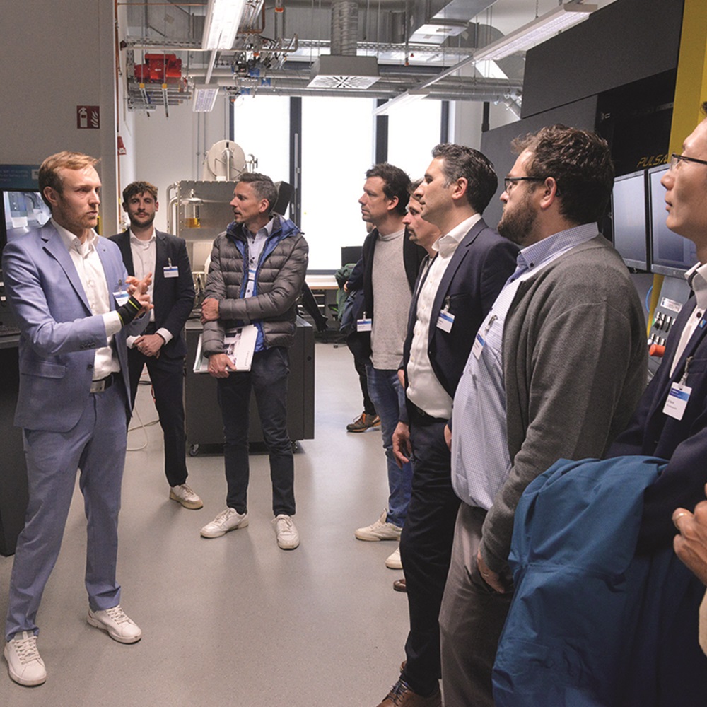 Der Rundgang durch die Labore des Fraunhofer ILT, des RWTH »Forschungscampus Digital Photonic Production« sowie des RWTH Aachen – Lehrstuhl für Lasertechnik und RWTH Aachen – Lehrstuhl für Technologie Optisccher Systeme bot mit neun Stationen die Chance, sich viele der im Workshop vorgestellten Technologien live anzusehen. Eine präsentierte Anwendung war das Selektive Laser-induzierte Ätzen (SLE). Dabei schreibt der fokussierte Laserstrahl die Kontur des gewünschten Bauteils in einen Glasrohling und dieser wird anschließend über einen Ätzprozess freigelegt.