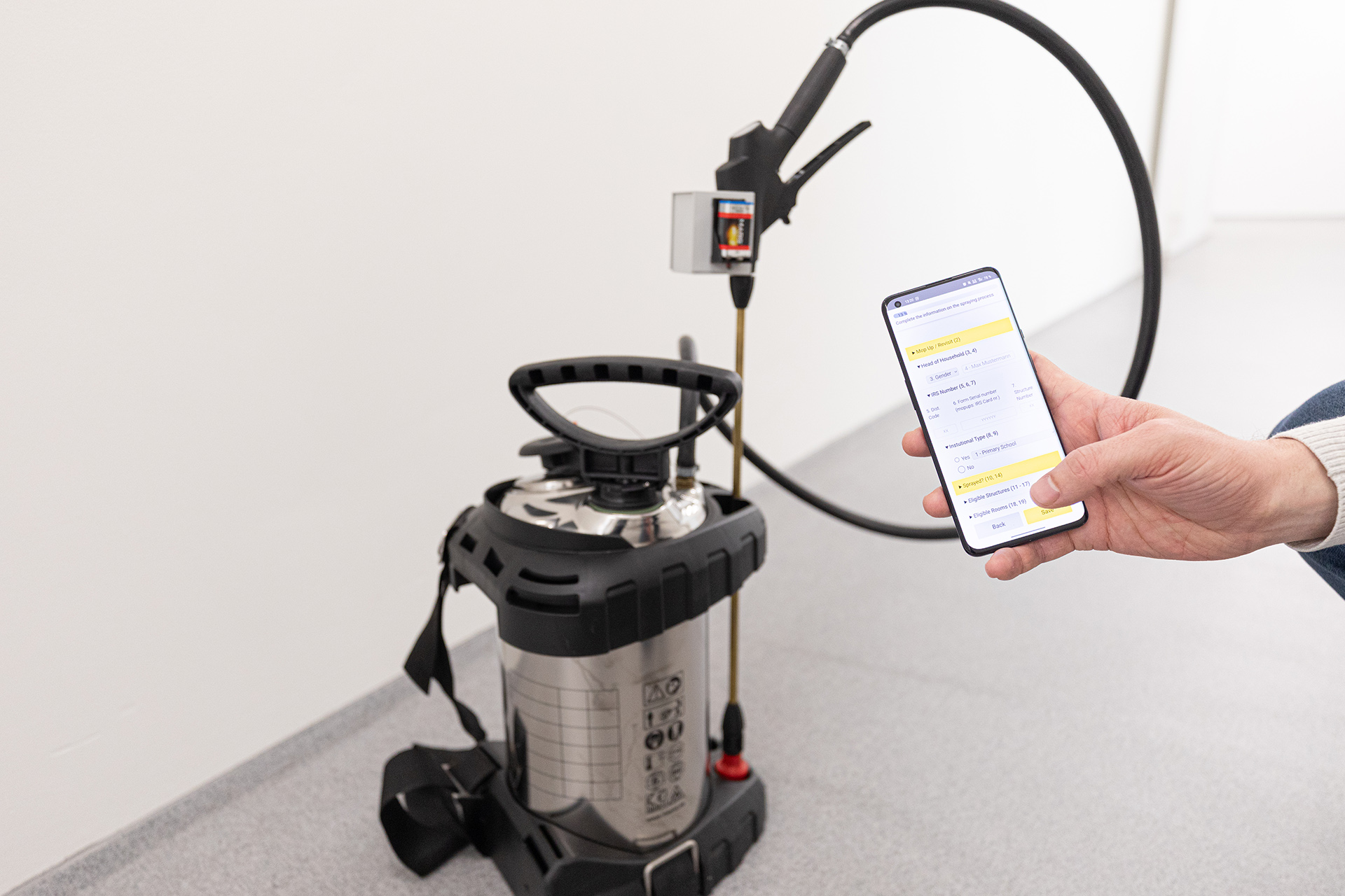 Ein weiterer Sensor erfasst die Sprühbewegungen des Seuchenbekämpfers. »Wenn er die Wände zu schräg einsprüht, kommt in manchen Ecken womöglich nicht genug Insektizid an«, sagt Hägle. »Wenn ihn die Web-App darauf aufmerksam macht, kann er seine Körperhaltung korrigieren. Diese Bewegungsdaten werden aber natürlich nicht an die Einsatzzentrale übermittelt.«