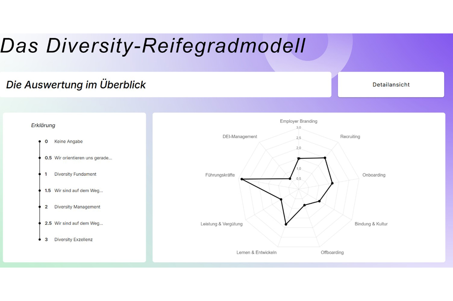 Das mit dem heutigen Tag erhältliche Diversity-Reifegradmodell ist bundesweit das erste frei verfügbare Modell dieser Art. Zwei Eigenschaften zeichnen das Modell aus: Es ist trotz des beträchtlichen Entwicklungsaufwands kostenlos und trotz der großen Komplexität des Themas sehr niedrigschwellig einsetzbar. Das Modell soll Unternehmen in Deutschland helfen, im Selbsttest ihren aktuellen Stand in Bezug auf DEI (Diversity, Equity & Inclusion, zu Deutsch „Vielfalt, Chancengerechtigkeit und Teilhabe“) zu bewerten und praktische Schritte hin zu mehr Diversität und Teilhabe zu definieren. Es eignet sich für alle Organisationsformen und -größen: Kleinst- und Kleinunternehmen, Mittelstand, Konzerne.