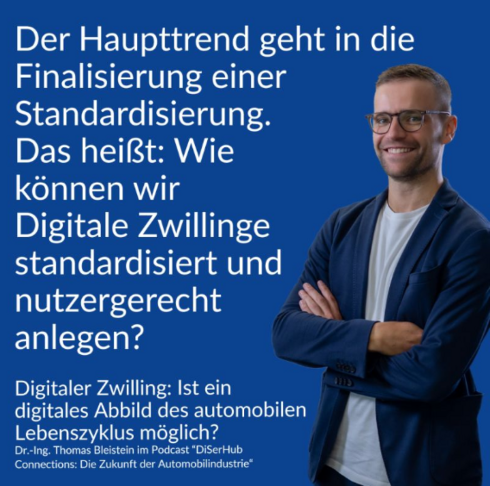 In der neuen Podcast-Episode von DiSerHub Connections diskutieren Martin Schuler und Dr. Thomas Bleistein vom August-Wilhelm Scheer Institut den Einsatz digitaler Zwillinge über den gesamten automobilen Lebenszyklus hinweg. Im Fokus stehen Potenziale für Effizienz und Nachhaltigkeit sowie die Rolle von Standards wie dem Digital Product Passport (DPP). Die Folge liefert praxisnahe Einblicke für Fachleute aus der Automobilbranche.