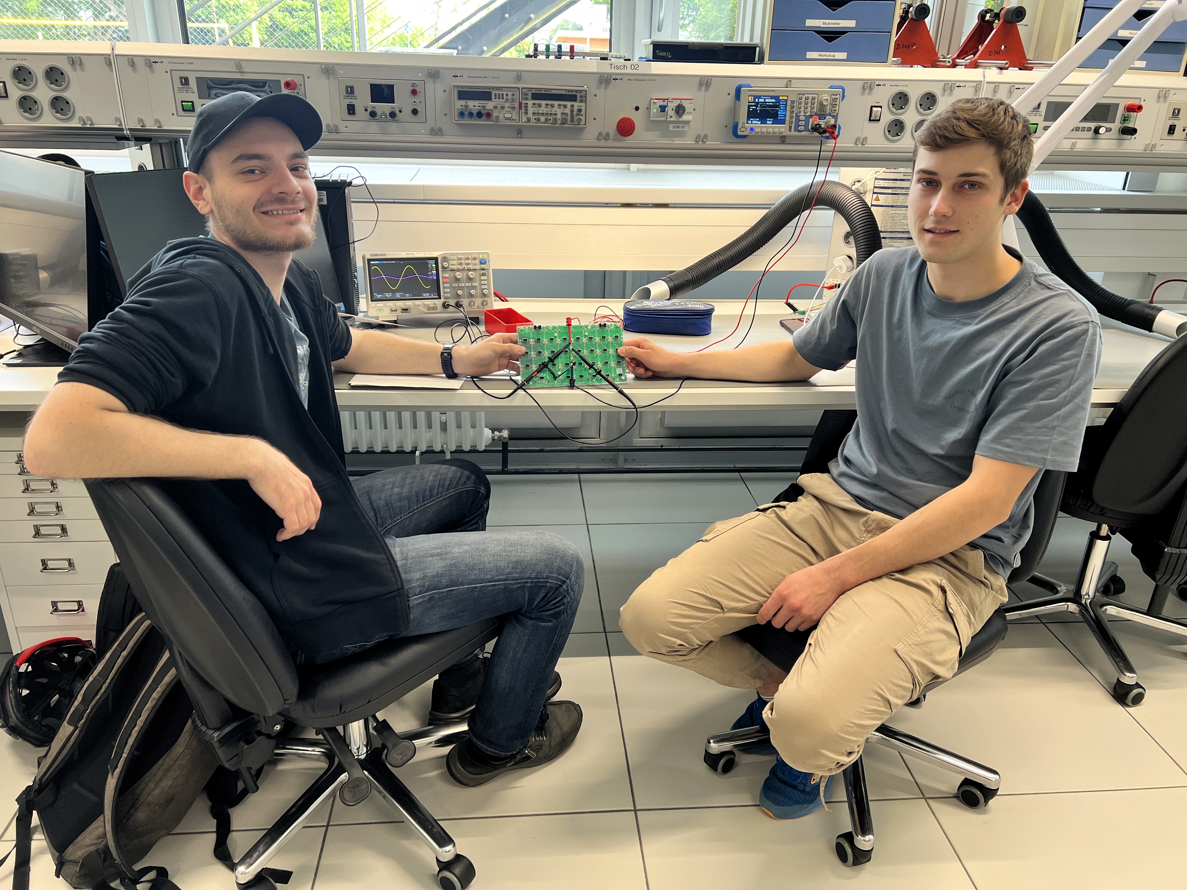 Die Studenten Joshua Weinmann und Erik Stahl zeigen sich ebenfalls begeistert und kommen beim Testen auch sehr gut voran. „Der Feldversuch macht großen Spaß. Wir sehen einen ganz klaren Mehrwert für den Unterricht“, sagt Joshua Weinmann. Einen großen Vorteil sieht Kommilitone Erik Stahl unter anderem in der einfachen Anwendung: „MEXLEfirst ist wirklich sehr nutzerfreundlich. Die Platine bietet viel Platz und das macht das Arbeiten mit ihr sehr übersichtlich.“