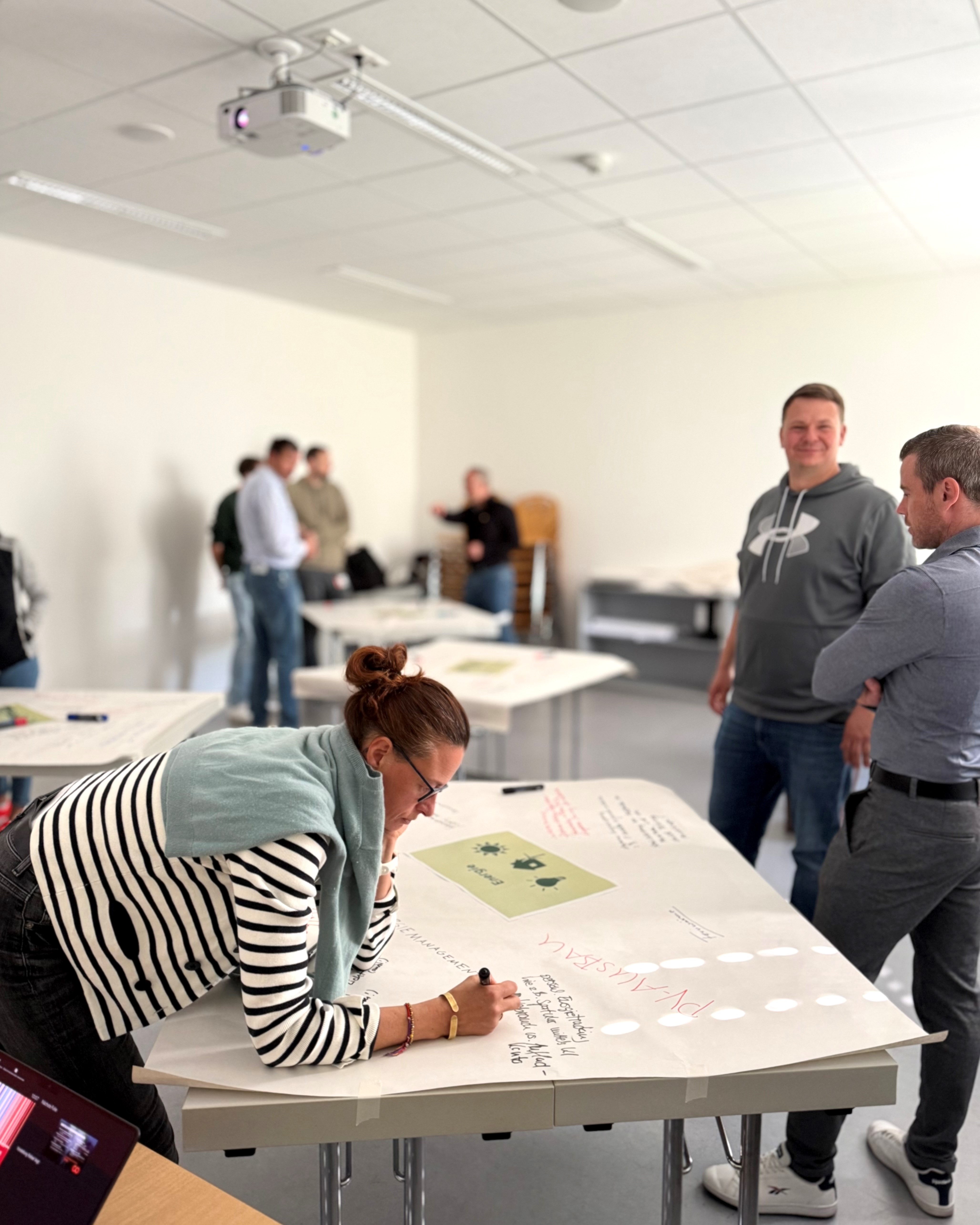 In Workshops erarbeiteten Studierende, Mitarbeitende und Lehrende bereits erste Lösungen für mehr Klimaschutz. In interaktiven Formaten wie World-Café und Klima-Puzzle wurden Ideen zu Themen wie Energie (Strom, Wärme), Mobilität, Beschaffung, Abfall, Wasser und Verhaltensänderungen gesammelt. Geplant sind unter anderem die Prüfung von PV-Anlagen auf Dächern, der Anschluss an Fernwärme sowie energie- und wärmesparendes Verhalten im Arbeitsalltag und organisatorische und wirtschaftliche Maßnahmen zur CO₂-Reduktion. Also zum Beispiel die Einführung eines nachhaltigen Beschaffungssystems. Auch in der Lehre und Forschung sollen planetare Grenzen künftig stärker berücksichtigt werden. Die Klimaschutzmaßnahmen werden langfristig in der Hochschulpolitik verankert. Deshalb wird das umfassende Energie- und Klimamanagementsystem auch Maßnahmencontrolling, eine Verstetigungsstrategie und eine Kommunikationsstrategie umfassen.