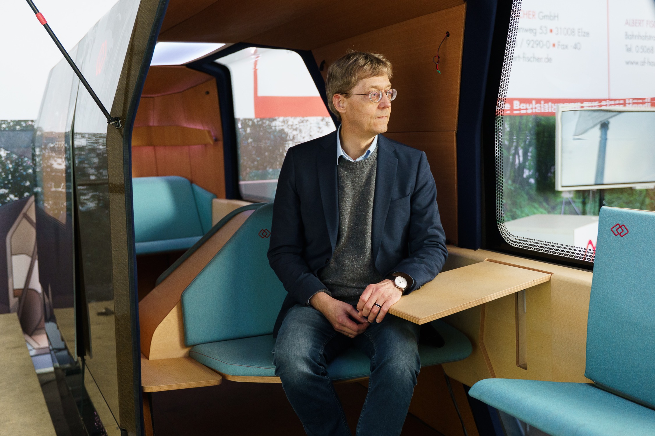 Prof. Dr. Herbert Funke ist Leichtbauspezialist an der HSBI und im Projekt maßgeblich für die Entwicklung der MONOCAB-Kabine zuständig. Funke: „Die Gestaltung der Kabine prägt das Erscheinungsbild des Fahrzeuges und ist gleichzeitig Sicherheitsstruktur für die Fahrgäste. Außerdem soll die Kabine möglichst leicht sein, damit der Fahrzeugschwerpunkt niedrig bleibt und dadurch die Stabilisierung auch wesentlich besser funktioniert. Die Herausforderung ist dabei, eine Materialkombination zu finden, die allen Sicherheitsanforderungen genügt, aber auch für Prototypen mit geringen Werkzeug- und Vorrichtungskosten ästhetisch gestaltet werden kann.“