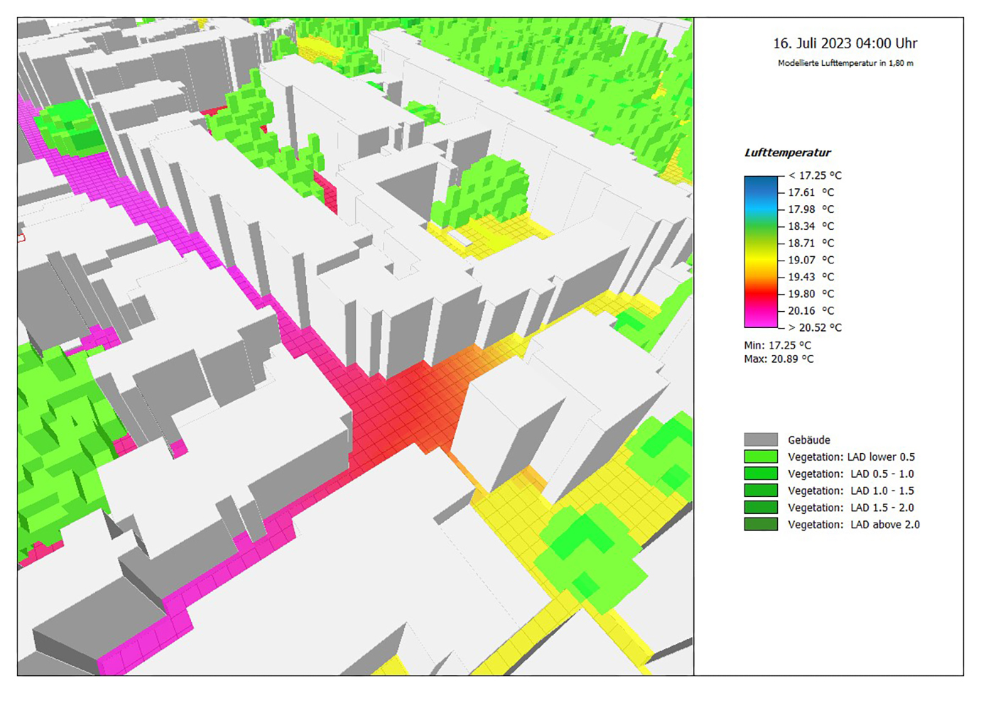 Ein besonderer Beitrag der Universität Augsburg liegt in der Modellierung von Anpassungsmaßnahmen – etwa Dachbegrünung, reflektierende Fassaden oder Verschattung. „Unsere Computermodelle erlauben es, gezielt Maßnahmen vor deren Umsetzung zu testen. So können wir simulieren, welchen mildernden Effekt z. B. ein schattenspendender Baum im Hof oder ein helleres Dach haben“, erklärt Beck, der Mitglied im Zentrum für Klimaresilienz der Universität ist. Die Ergebnisse fließen in digitale Hitzekarten ein, die als Planungsgrundlage für Städte und Einrichtungen dienen.