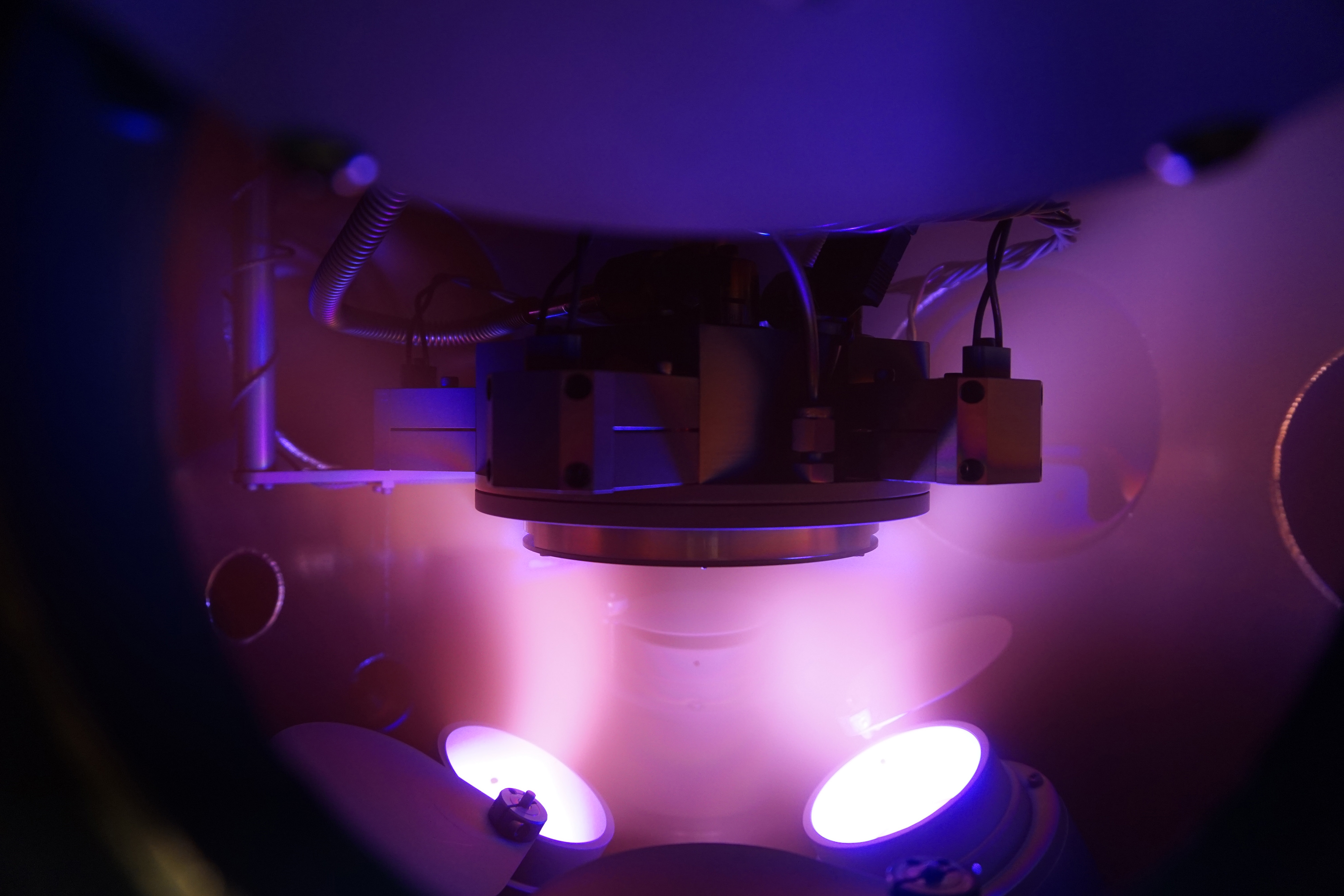 Hier gelang den Empa-Forschenden der Durchbruch. Um die Ionen auf das isolierende Substrat zu beschleunigen, nutzen sie den Magnetron-Puls selbst – den kurzen Impuls, der die Prozessgas-Ionen auf das Target schiesst. Das Plasma in der Kammer enthält nämlich nicht nur Ionen, sondern auch Elektronen. Jeder Puls des Magnetrons beschleunigt automatisch auch diese negativ geladenen Elementarteilchen auf das Substrat. Die winzigen Elektronen kommen dabei viel schneller als die Ionen am Ziel an.