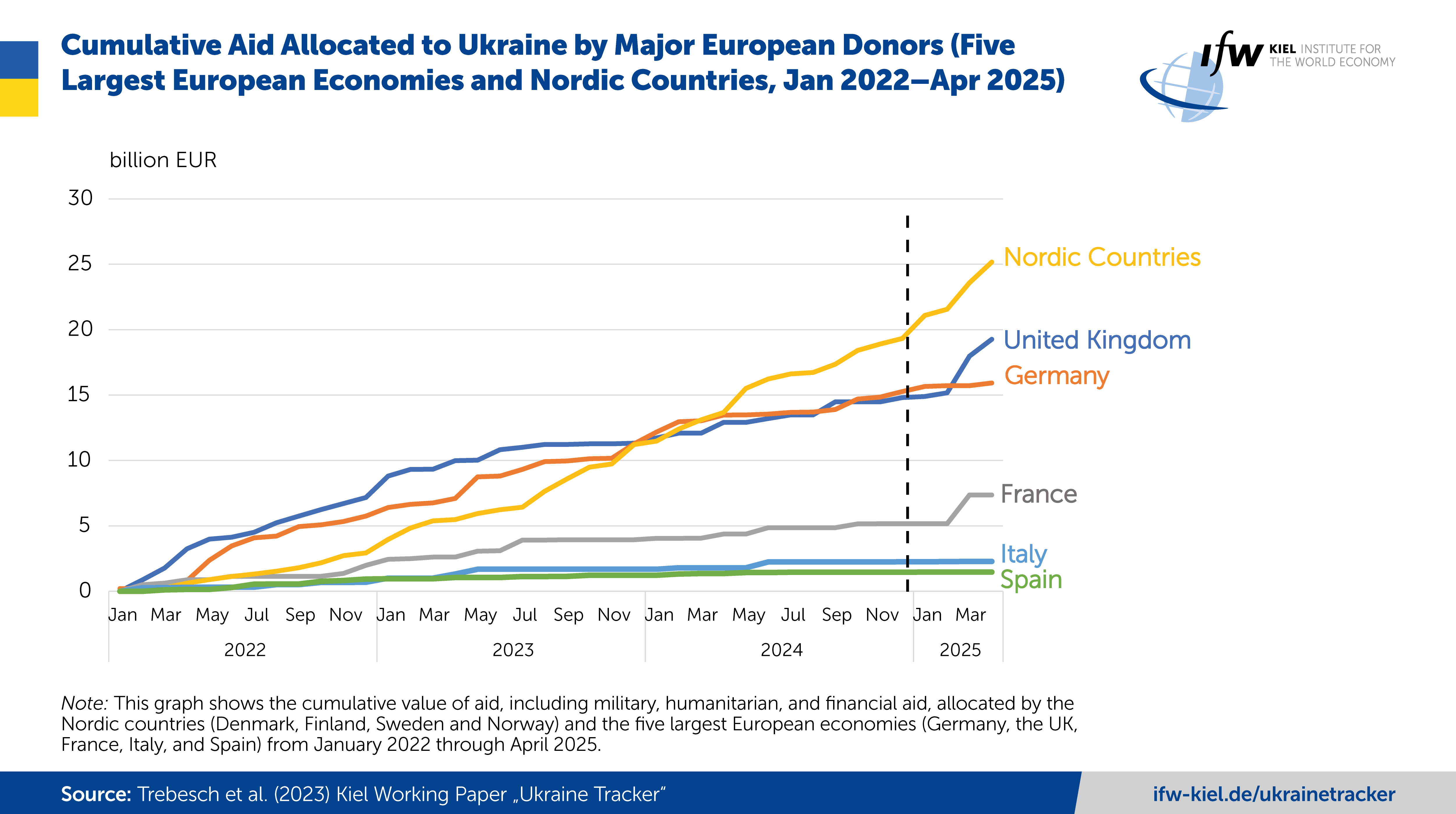 (...) These are among the key findings from the latest update of the Ukraine Support Tracker (https://www.ifw-kiel.de/topics/war-against-ukraine/ukraine-support-tracker/), which includes data through April 2025.