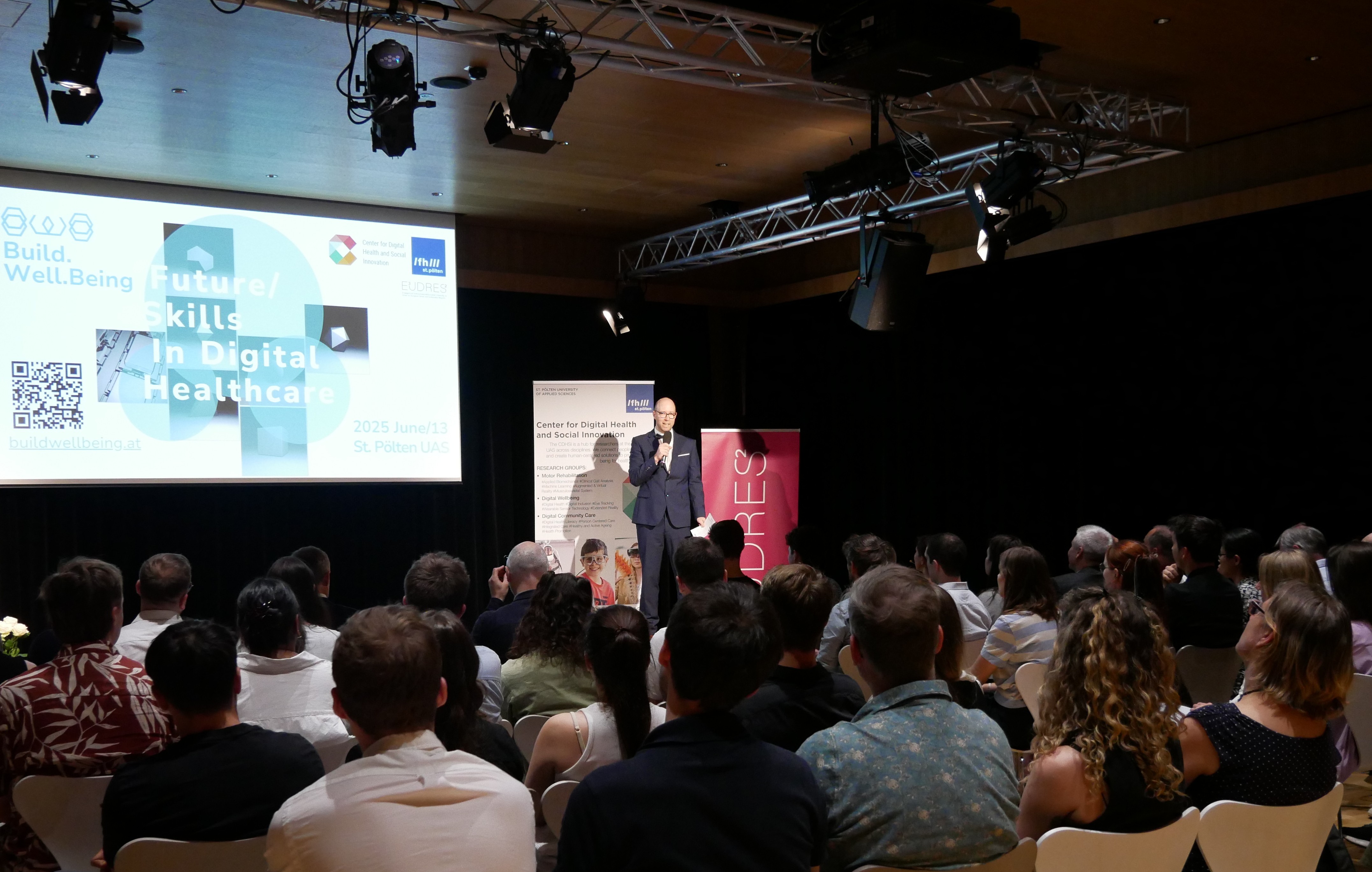 „Die jährliche build.well.being ist eine offene Networking-Veranstaltung für Macher*innen im digitalen Gesundheitswesen. Gesundheitsexpert*innen treffen auf Entwickler*innen, angewandte Wissenschaft trifft auf innovative Ideen von Studierenden und Unternehmen“, sagt Jakob Doppler, Leiter des Studiengangs Digital Healthcare und des Center for Digital Health an Social Innovation (CDHSI) an der FH St. Pölten.