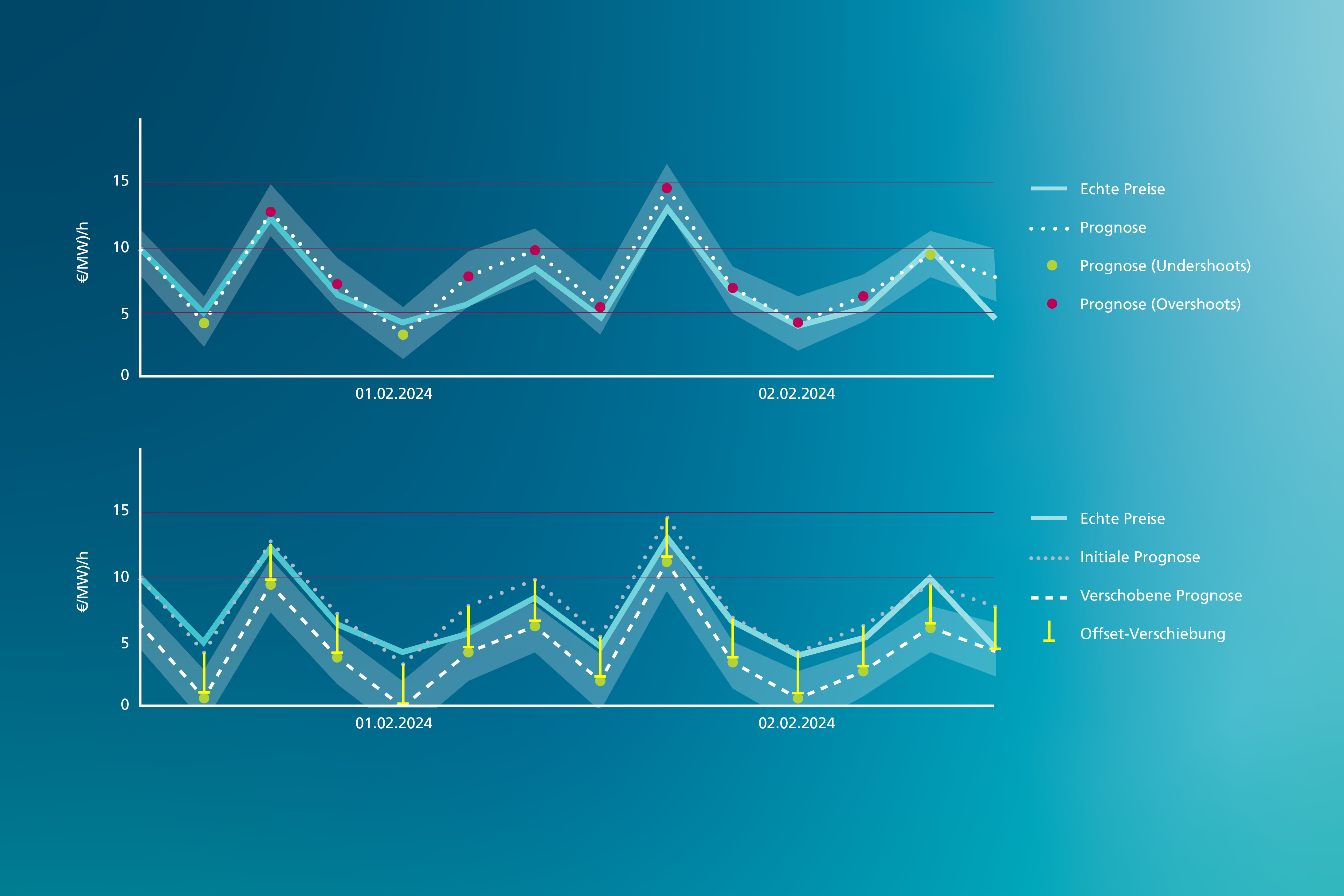 In einem zweiten Schritt haben sie ihre KI-gestützte Preisprognose um ein speziell entwickeltes Offset-Verfahren ergänzt. »Das ist gewissermaßen die Nachbearbeitung des prognostizierten Strompreises, sodass das abgegebene Gebot leicht darunter liegt«, erklärt Vincent Bezold vom Forschungsteam Datengetriebene Energiesystemoptimierung am Fraunhofer IPA. »Das hat mit den Spielregeln auf dem ›Pay-as-Bid‹-Markt zu tun. Wer dort mit seinem Gebot zu hoch liegt, geht leer aus. Deshalb lohnt es sich, den tatsächlichen Strompreis gezielt zu unterbieten – und genau das erreichen wir mit unserem Offset-Verfahren.«