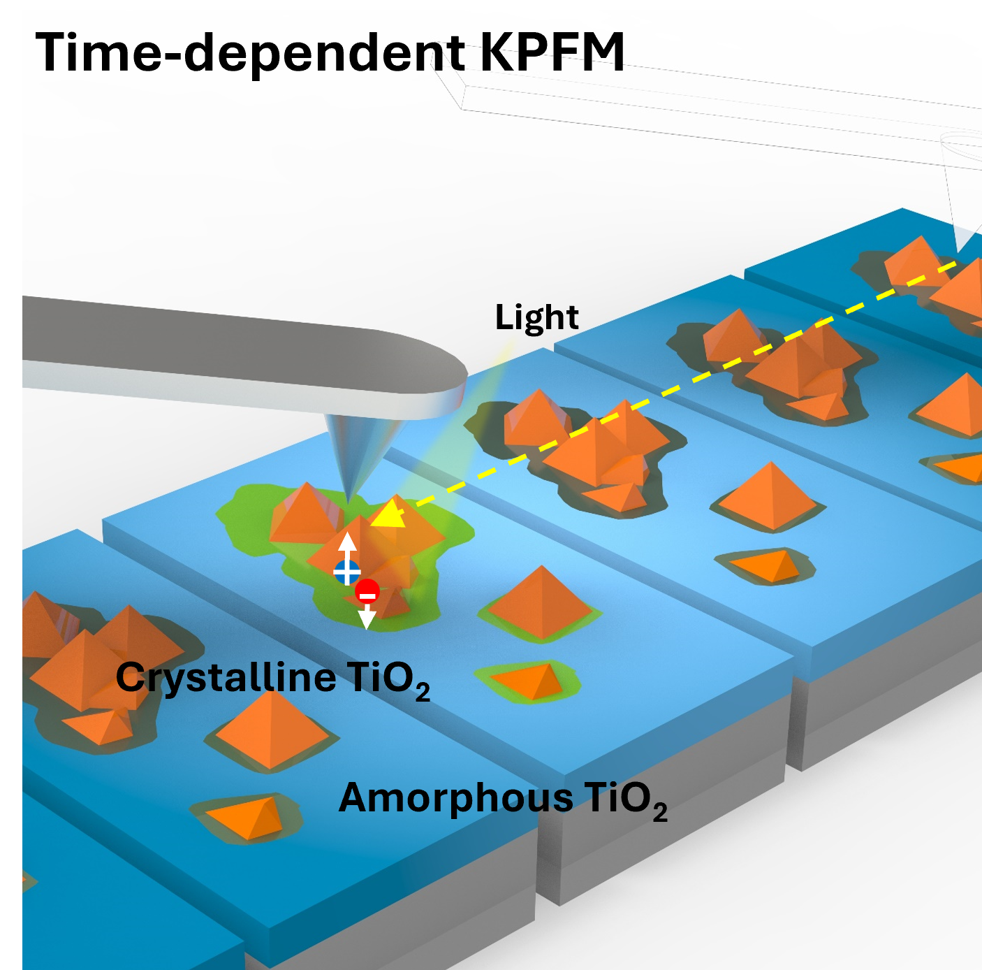 Der neue Ansatz, der von Prof. Dr. Francesca M. Toma, der Hauptautorin der Arbeit und Leiterin des Instituts für Funktional Materialien für Nachhaltigkeit, vorgestellt wurde, funktioniert durch die Messung winziger Spannungsänderungen. Sie treten in kleinen Bereichen der Oberfläche einer Photoelektrode auf, wenn diese mit Licht bestrahlt wird. Die Forschenden haben ihre Technik in Zusammenarbeit mit dem Lawrence Berkeley National Lab eingesetzt, um Titandioxid (TiO2) zu untersuchen, ein Halbleitermaterial, das häufig zur Herstellung von Photoelektroden verwendet wird.