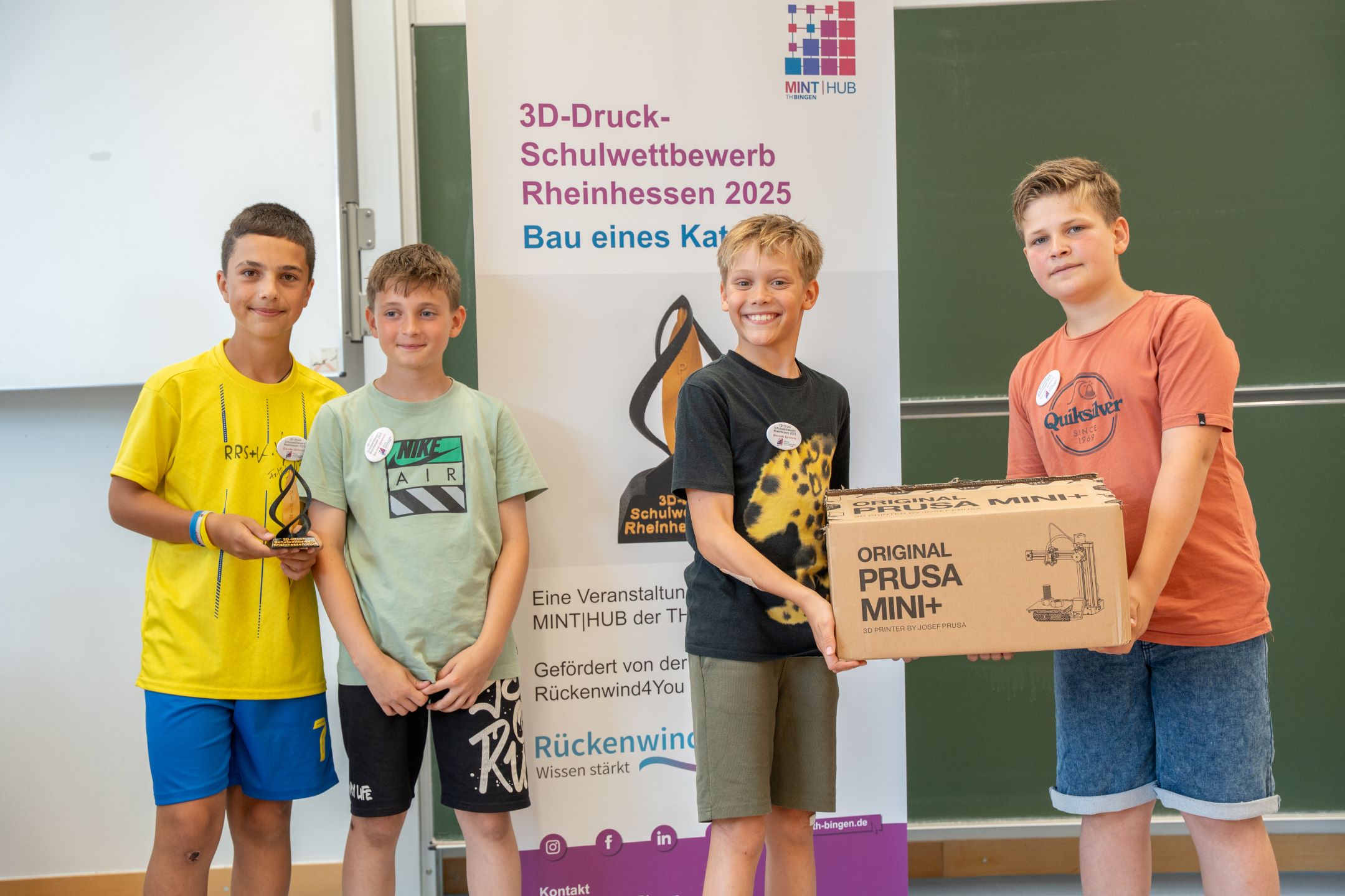 Am 26. Juni 2025 lag an der Technischen Hochschule (TH) Bingen Spannung in der Luft. Drei Schulteams waren angereist, um sich dem ersten 3D-Druck-Schulwettbewerb Rheinhessen zu stellen. Der Wettbewerb wurde von der Rückenwind4You-Stiftung in Kooperation mit dem MINT|HUB der TH Bingen ins Leben gerufen. Die Binger Rochus Realschule plus trug den Sieg davon.