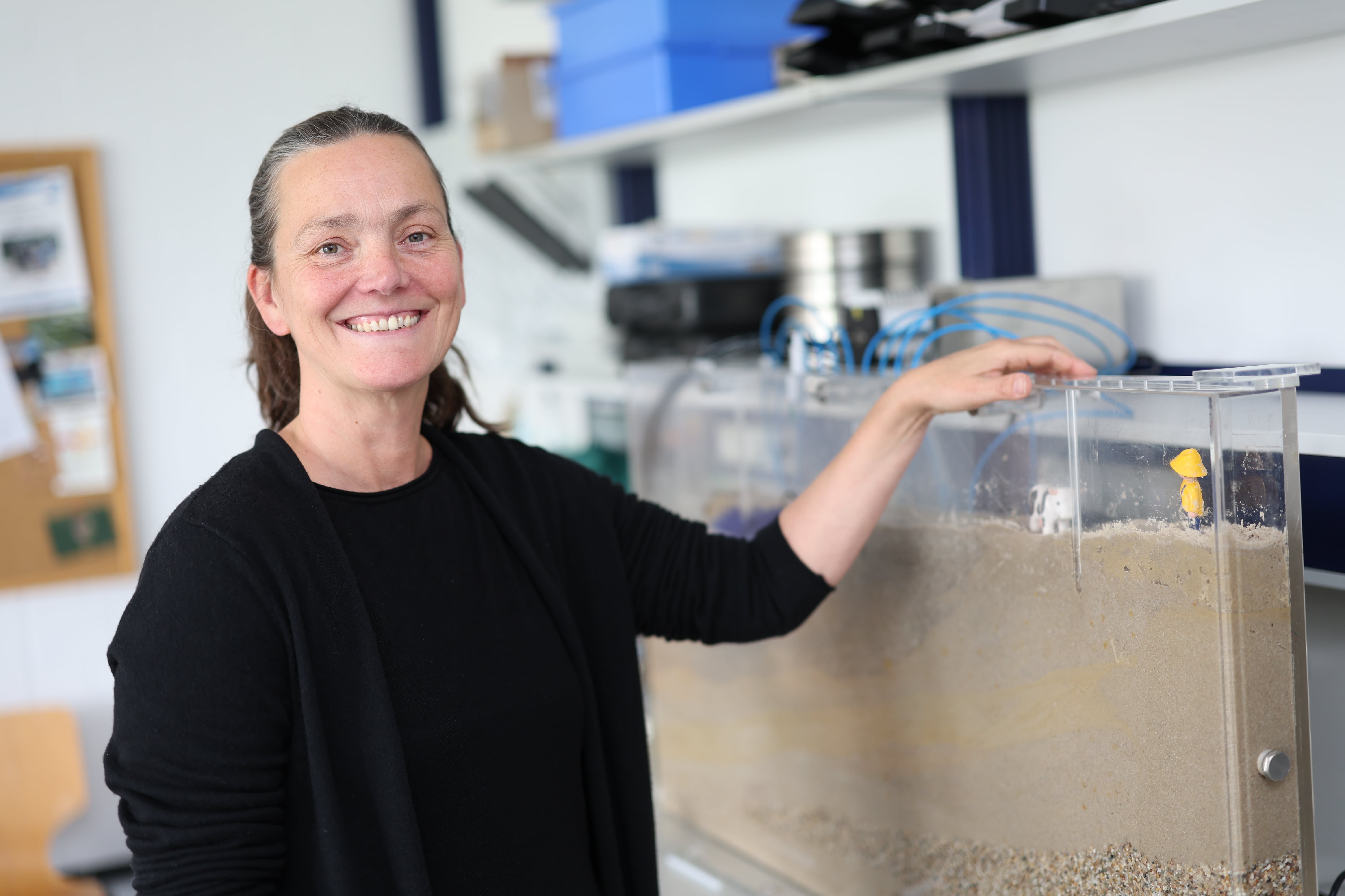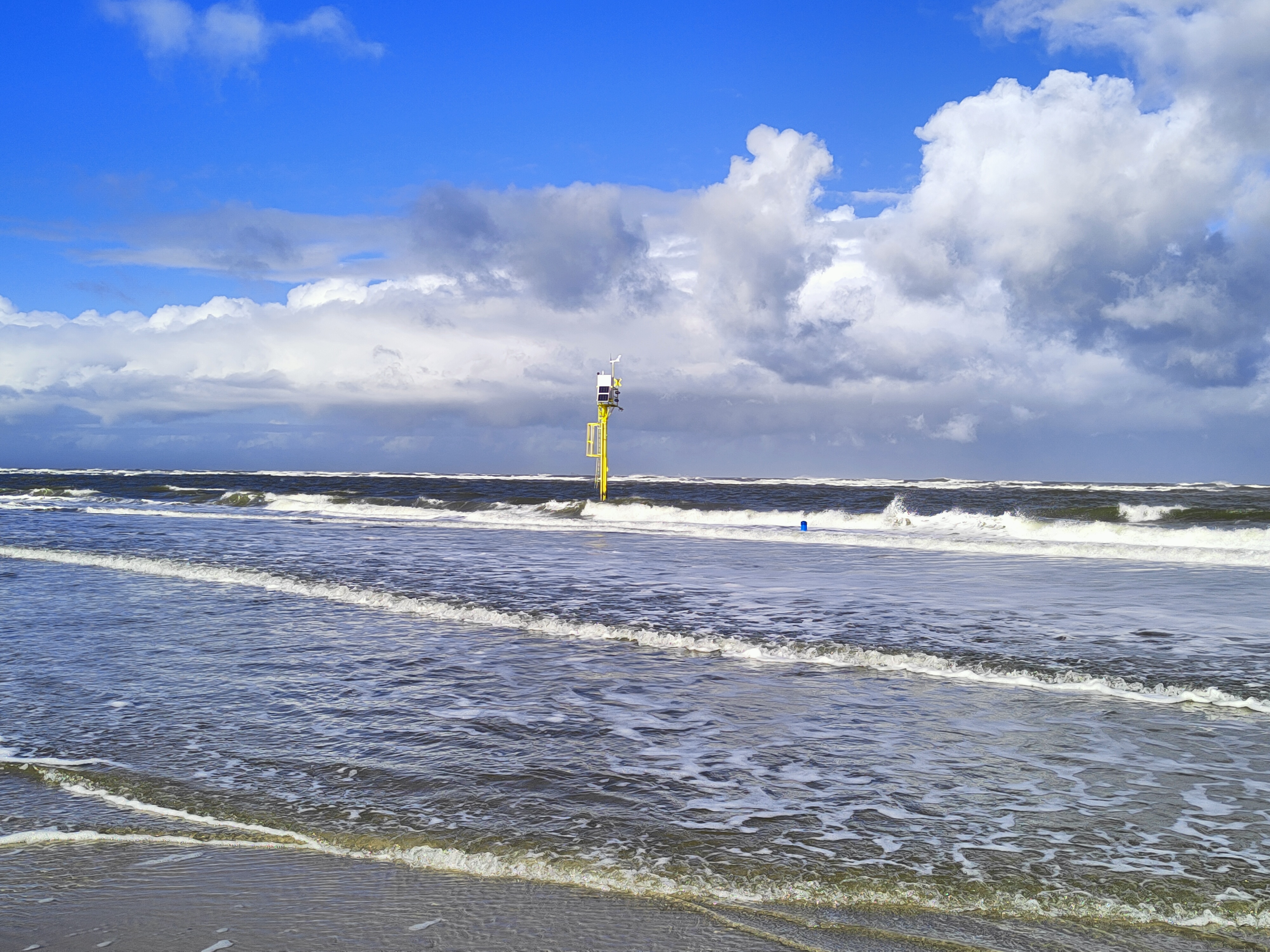 „Früher dachte man, dass an Stränden kaum biogeochemischer Umsatz stattfindet, weil der Strand hauptsächlich aus Quarzsand besteht“, sagt Massmann. Die Ergebnisse von rund 30 Messkampagnen, die kontinuierlich aufgezeichneten Daten und Studien mit mathematischen Modellen zeigen nun ein völlig anderes Bild: Durch die zweimal täglich wechselnden Gezeiten und Sturmfluten lagert sich der Sand am Strand ständig um. Ein genaues Bild hiervon haben sich die Forschenden unter anderem durch am Messpfahl befestigte Kameras und Drohnenaufnahmen gemacht.