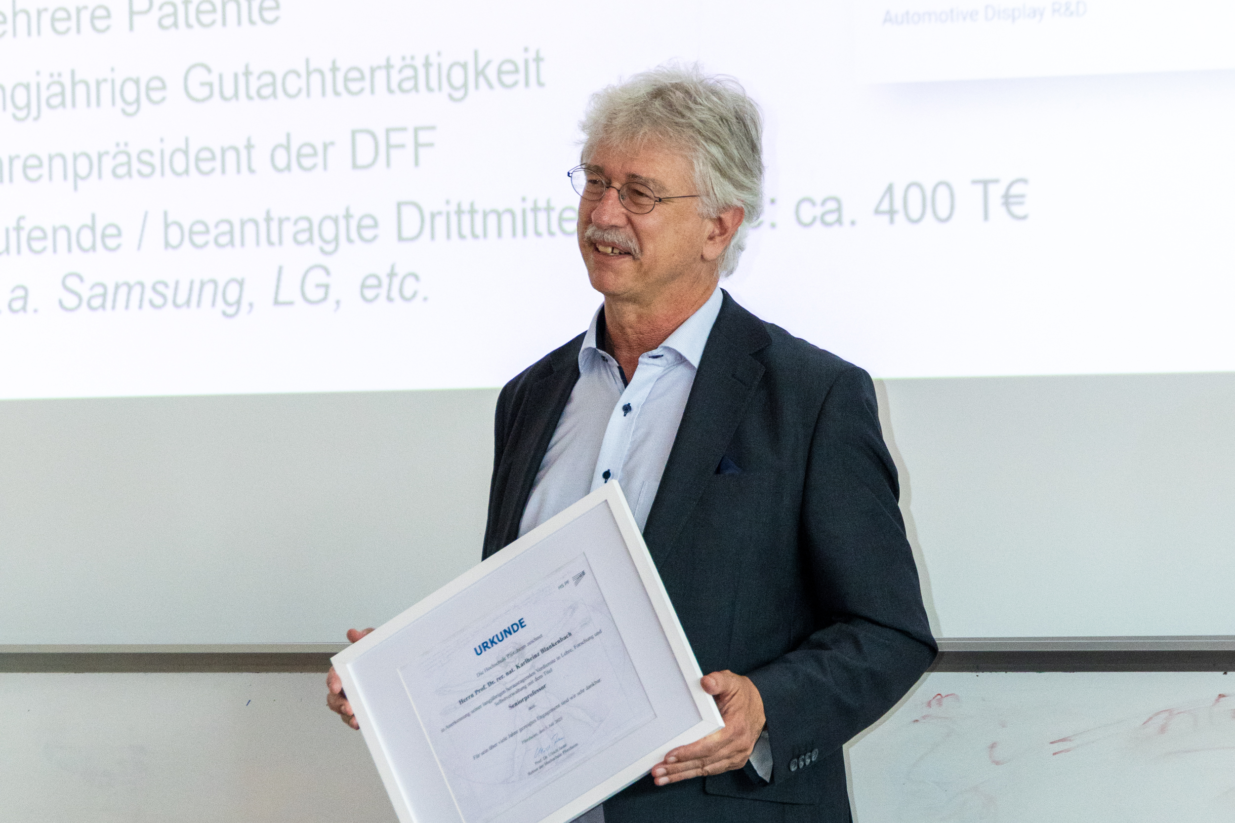 Die Hochschule Pforzheim hat erstmals eine Seniorprofessur verliehen. Prof. Dr. Karlheinz Blankenbach aus der Fakultät für Technik wurde für sein langjähriges Engagement in Lehre, Forschung und Hochschulentwicklung ausgezeichnet. Mit der Seniorprofessur bleibt er der Hochschule über den Ruhestand hinaus für weitere drei Jahre offiziell verbunden. Der Display-Experte wird weiterhin in der Lehre aktiv sein und seine Expertise in Projekte einbringen.