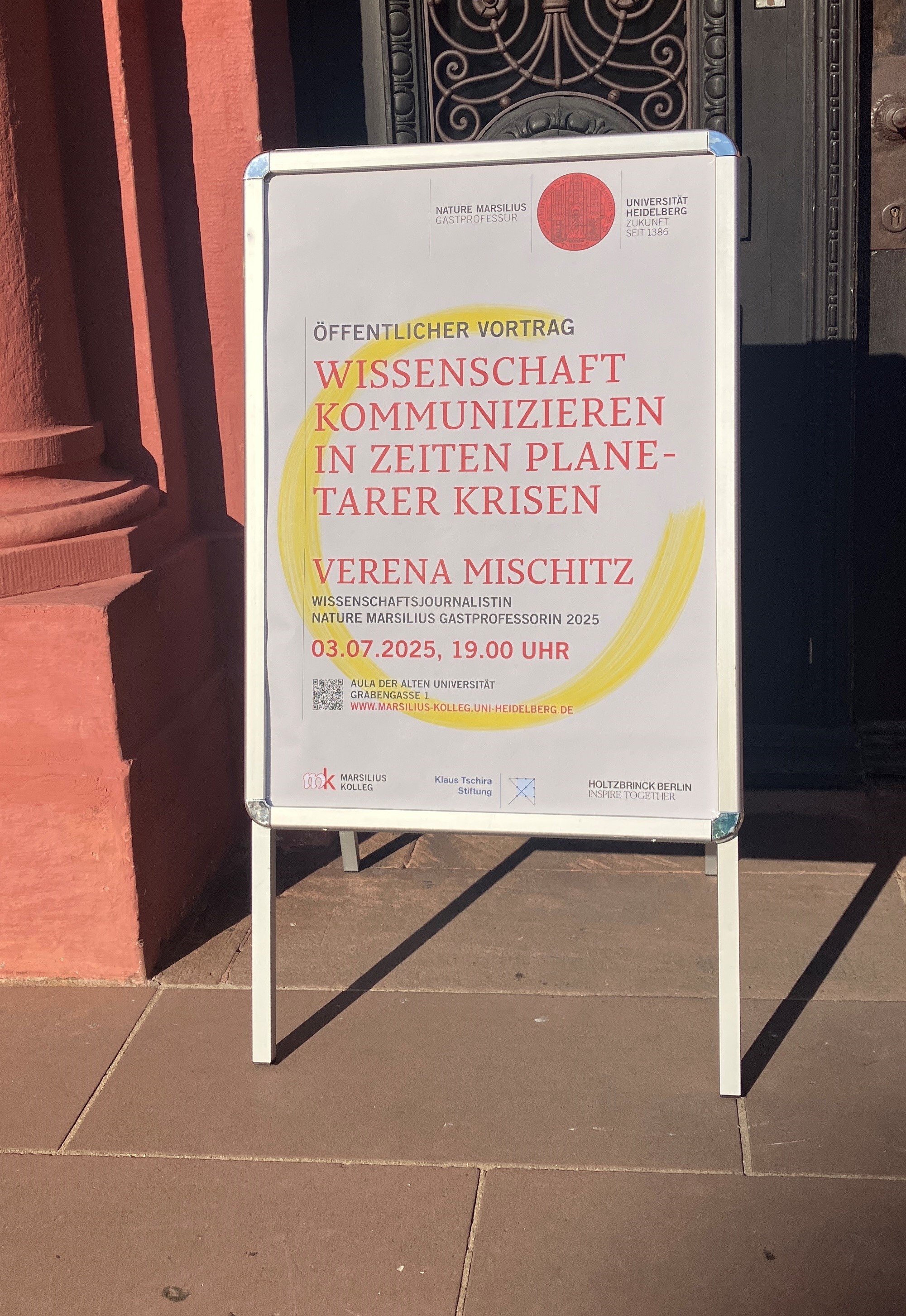 Vor allem aber ist sie eine begeisternde Erzählerin und Mutmacherin! Davon konnten sich die zahlreichen Besucherinnen und Besucher in der Alten Aula der Heidelberger Universität überzeugen. Sie habe Impulse gesetzt für eine neue Form des Dialogs von Wissenschaft und Gesellschaft, bescheinigte ihr die Rektorin der Heidelberger Universität, Prof. Dr. Frauke Melchior. Verena Mischitz habe in ihren Workshops und Seminaren deutlich gemacht, dass zukunftsfähige Wissenschaftskommunikation raus müsse aus der Komfortzone.