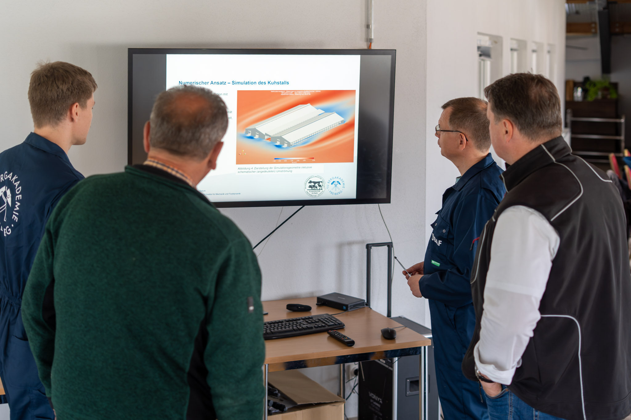 Mit ihrer Expertise für Strömungsmechanik und Bewetterung ist die TUBAF ingenieurtechnische Ideengeberin innerhalb des Verbunds. Dazu Professor Rüdiger Schwarze: „Wir messen in einem Milchviehbetrieb bei Leipzig, der Agrargenossenschaft Kitzen, die Luftströme und den Atem der Kühe und haben mit den Daten einen digitalen Zwilling des Stalls erstellt. Dieser liefert erste Hinweise darauf, welche Maßnahmen in Zukunft zu einem besseren Stallklima führen können.“