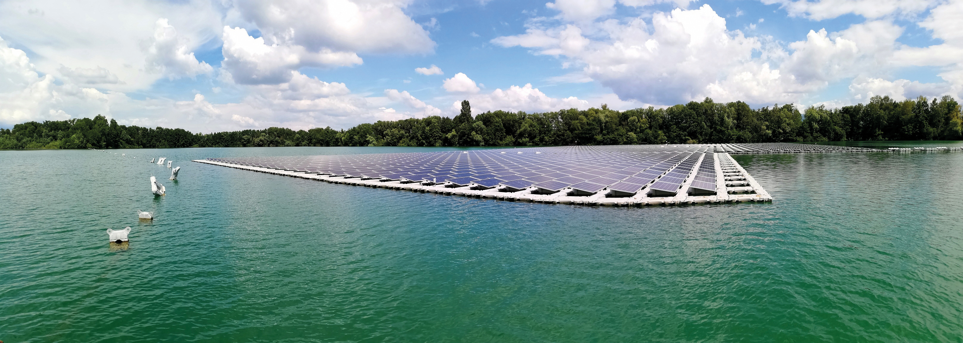 In Deutschland gibt es zahlreiche künstliche Gewässer, die sich technisch für die Nutzung schwimmender PV-Anlagen eignen. Besonders vielversprechend erscheinen zum einen industriell genutzte Gewässer, wie Kies- und Baggerseen, da hier der solare Strom direkt zur Dekarbonisierung der Industrie beiträgt. Betrachtet man insbesondere die Umweltverträglichkeit, hat zum anderen die Nachnutzung vormals industriell genutzter Flächen wie stillgelegte, geflutete Tagebauseen ein hohes Potenzial. Schätzungen zufolge könnte die installierbare Leistung bei einer Flächenabdeckung von 15 Prozent zwischen 13,7 und 19,1 Gigawatt liegen.