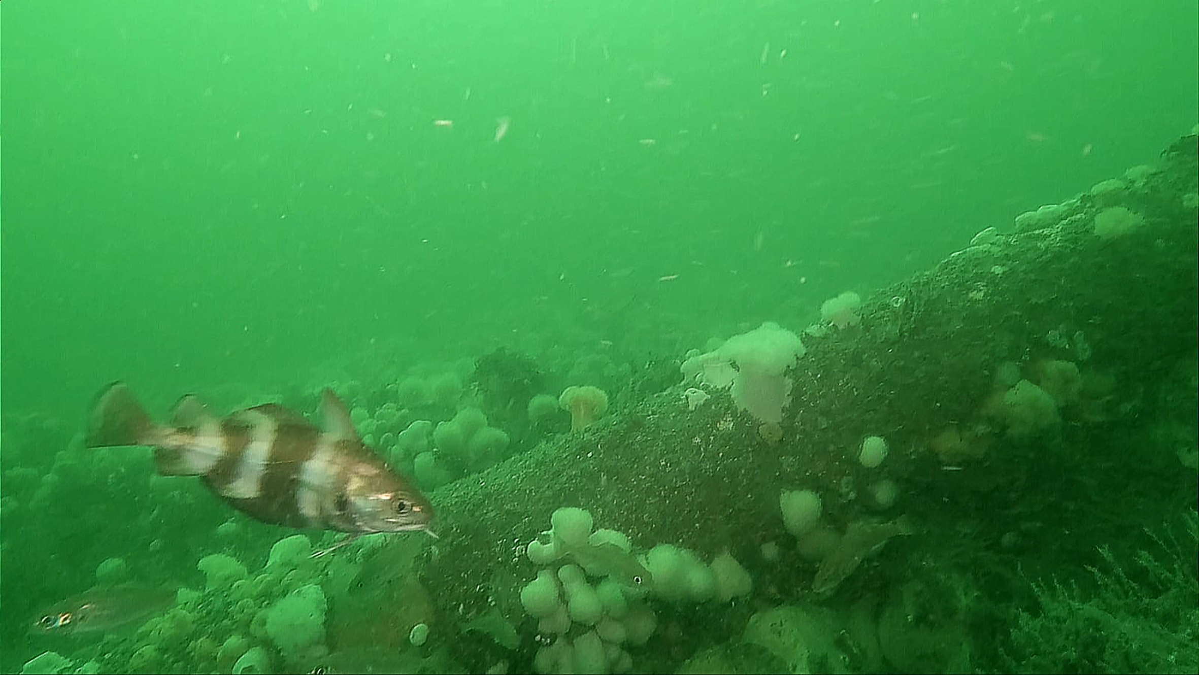 Ein weiterer interessanter Befund: Die Forschenden trafen auf den gestreiften Schleimfisch (Parablennius gattorugine), eine Art, die typischerweise auf felsigen Meeresböden anzutreffen ist. Außerdem gelang – neben dem bereits bekannten Vorkommen von Taschenkrebsen (Cancer pagurus) – der Nachweis von Samtkrabben (Portunus puber) innerhalb des Windparks. Dies untermauert die These, dass die künstlich geschaffenen Strukturen und insbesondere der Kolkschutz, der aus Steinen um die Fundamentgründungen herum installiert wurde, einen Riff-Effekt erzeugen.