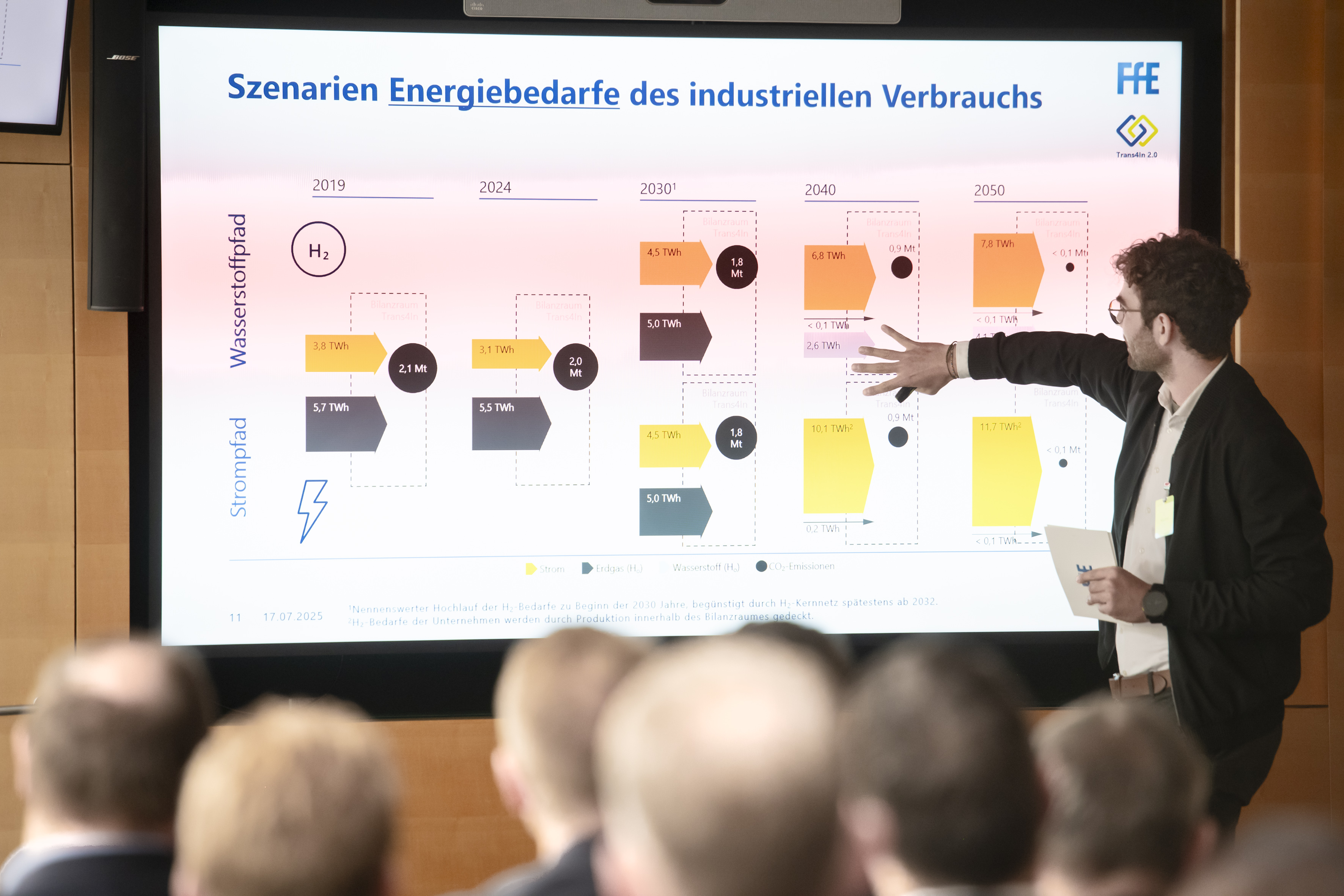Bereits im Jahr 2022 wurde im Rahmen der Kurzstudie „Trans4In – Energietransformation im Chemiedreieck Bayern“ erstmals untersucht, welche zukünftigen Energiebedarfe und infra-strukturellen Anforderungen sich aus den Transformationsplänen der Unternehmen im Chemiedreieck ableiten lassen. Seitdem haben sich zentrale Rahmenbedingungen verän-dert: steigende Energiepreise, eine gedämpfte Konjunkturerwartung, neue regulatorische Vorgaben sowie Anpassungen in den Infrastrukturplanungen machten eine Aktualisierung der bisherigen Annahmen erforderlich. Nach der neuesten Studie würde der Gesamtener-giebedarf bei Strom und Wasserstoff im Zuge einer erfolgreichen Transformation nach wie vor deutlich steigen, wobei allein der Strombedarf bereits bis 2030 auf das 1,5-fache und bis 2040 auf mehr als das zwei- bis dreifache steigen wird. Im Vergleich des Strompfads mit dem Wasserstoffpfad zeigt sich außerdem, dass eine überregionale Wasserstoffversorgung den Strombedarf und die dafür nötige Anschlussleistung signifikant senken würde.