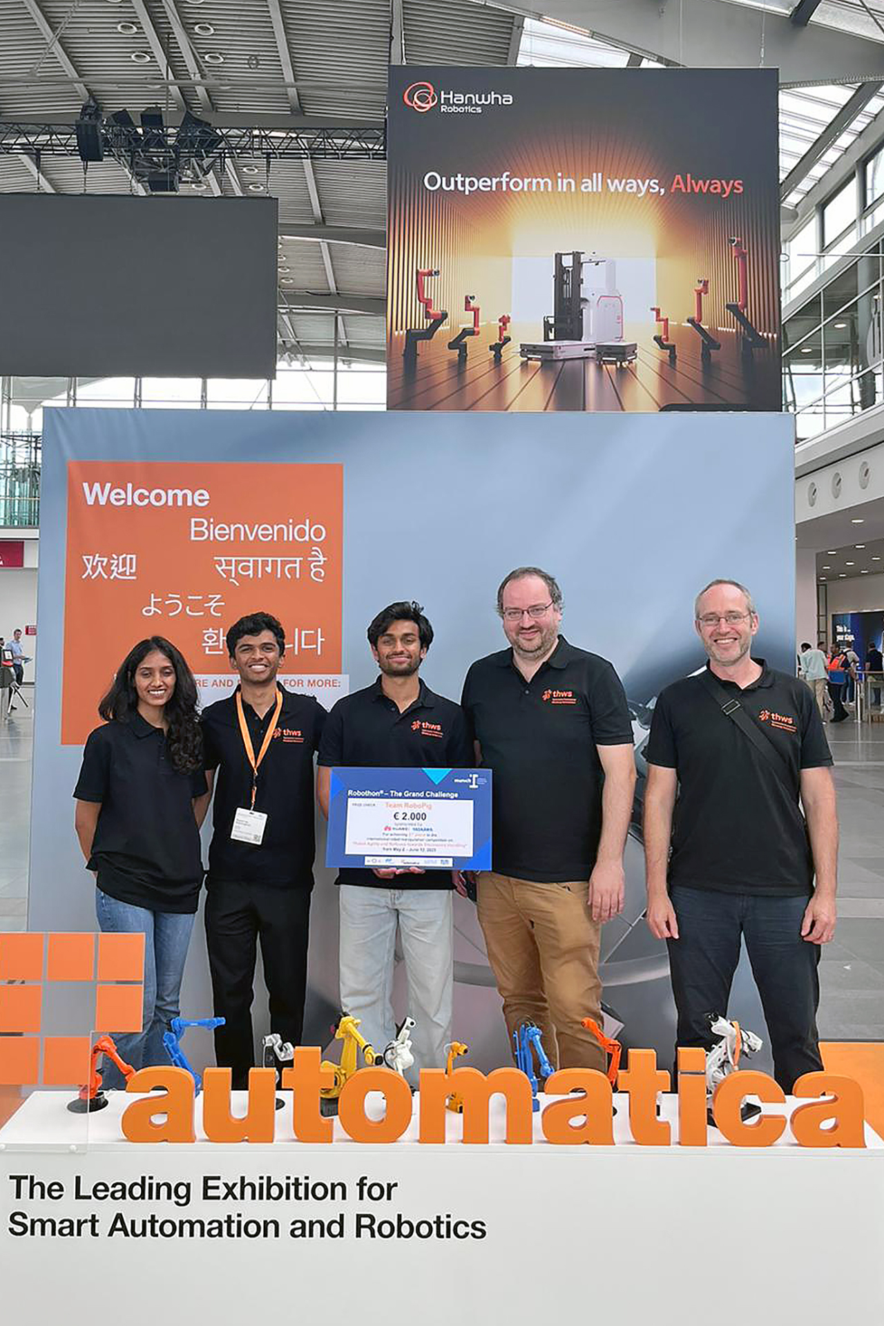Das Team „RoboPig“ der Technischen Hochschule Würzburg-Schweinfurt (THWS) hat beim diesjährigen „Robothon“-Wettbewerb im Rahmen der Automatica-Messe in München den dritten Platz erreicht und ein Preisgeld von 2.000 Euro gewonnen. Das Team des Centers für Robotik (CERI) der THWS nimmt bereits seit 2021 regelmäßig teil und kann auf eine lange Liste an Prämierungen zurückblicken.