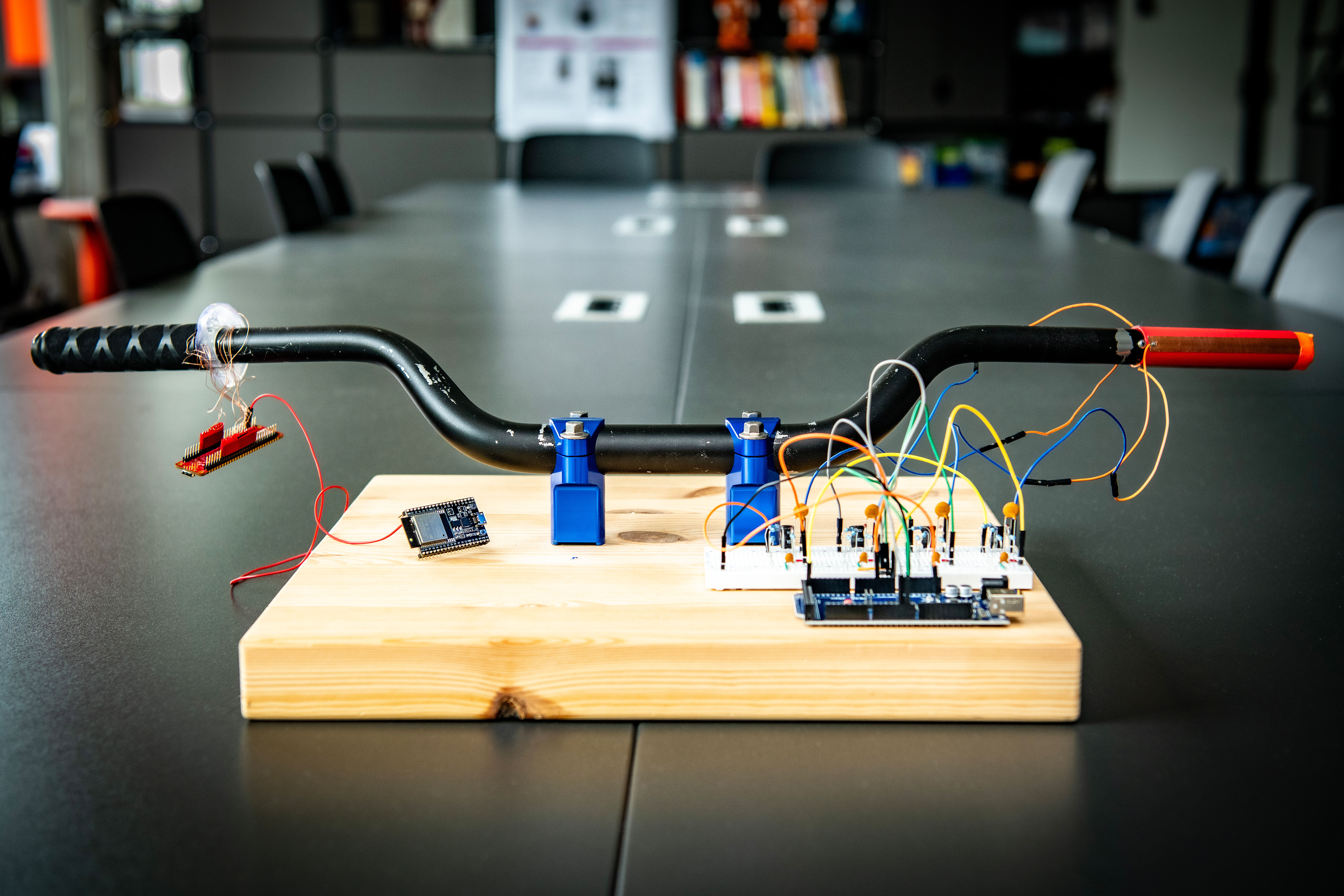 „Die Sensoren sollen feststellen, wie viele Finger sich am Griff befinden, und Gesten wie Wischen oder Tippen erkennen. Dadurch könnte beispielsweise ein Anruf durch Quetschen des Griffs angenommen werden. Der Blinker ließe sich durch ein Wischen mit dem Daumen von innen nach außen über den Griff aktivieren“, erläutert Böhmer. Das haptische Feedback könnte unter anderem die Navigationsfunktion unterstützen, indem zum Beispiel der linke Griff schnell vibriert, wenn links abgebogen werden soll.