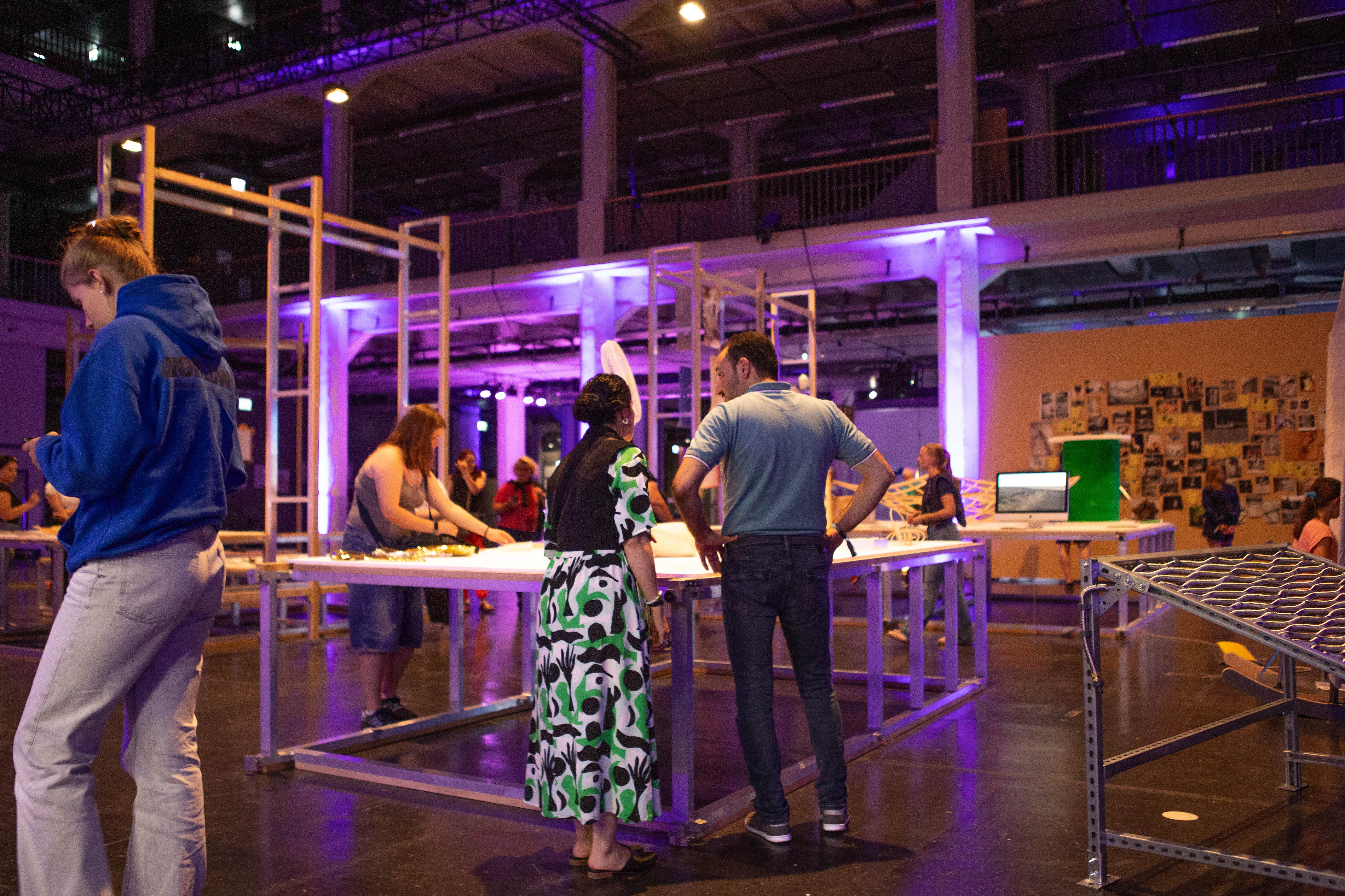 Ein weiteres interaktives Angebot zum Mitmachen: Besucher:innen können, unter Anleitung von Studierenden, vor Ort Knöpfe und Schmuckstücke im 3D-Druckverfahren gestalten – ein niedrigschwelliger Einblick in digitale Gestaltungstechnologien.