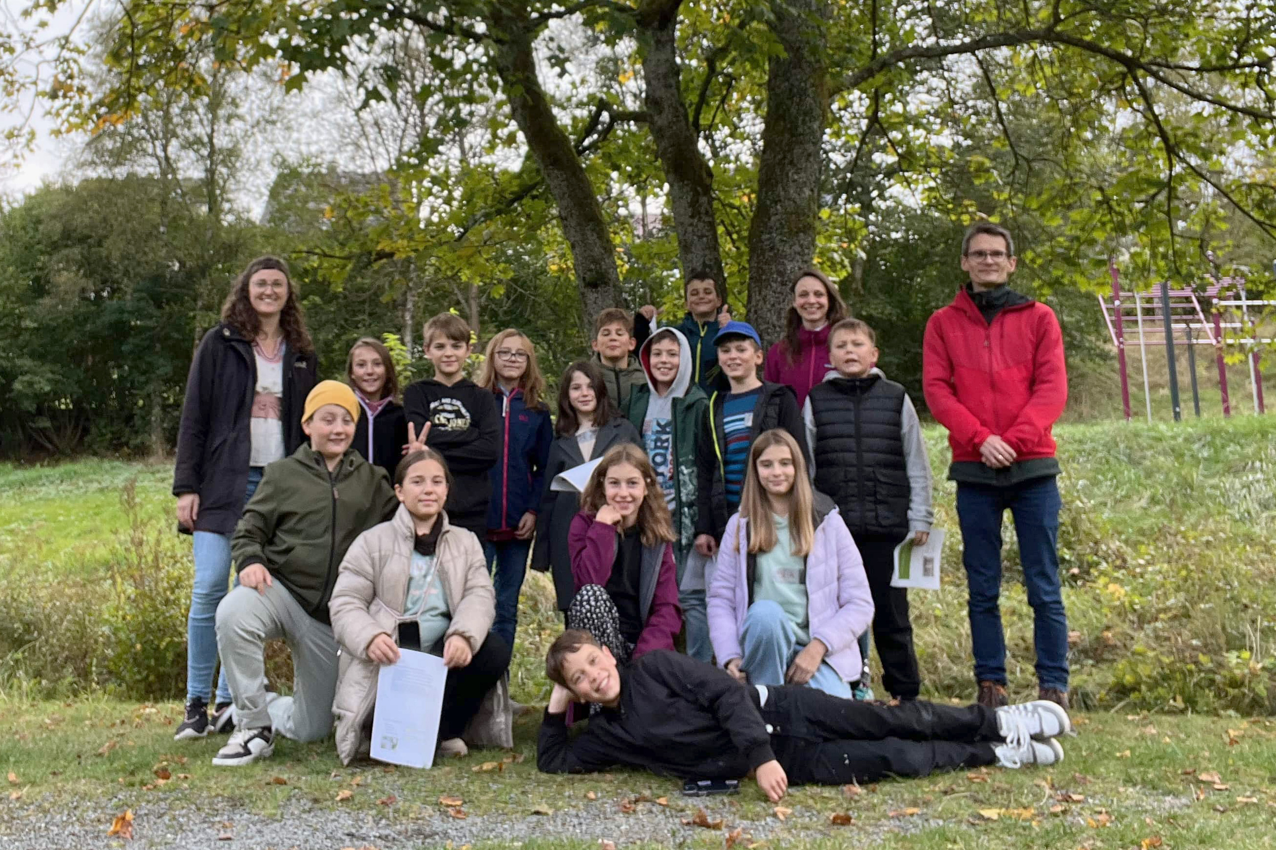 Besonders in Erinnerung blieb ein gemeinsamer Ausflug zu einer der Wasserstandsmessstellen. Bei einem Versiegelung-/Versickerungsexperiment auf dem Schulhof, einer Wiese und einem nahegelegenen Wald konnte beobachtet werden, wie Wasser auf unterschiedlichen Böden/Bodenbelägen versickert. Erkenntnisse: „Im losen Waldboden ist das Wasser richtig schnell weggewesen, auf der Wiese hat es etwas länger gedauert. Auf den Schulhofkacheln ist es auch nach einer Minute nicht wirklich versickert, sondern hat sich mehr verteilt und ist Richtung Abfluss gelaufen – hier ist also eine Entwässerung nötig.“
