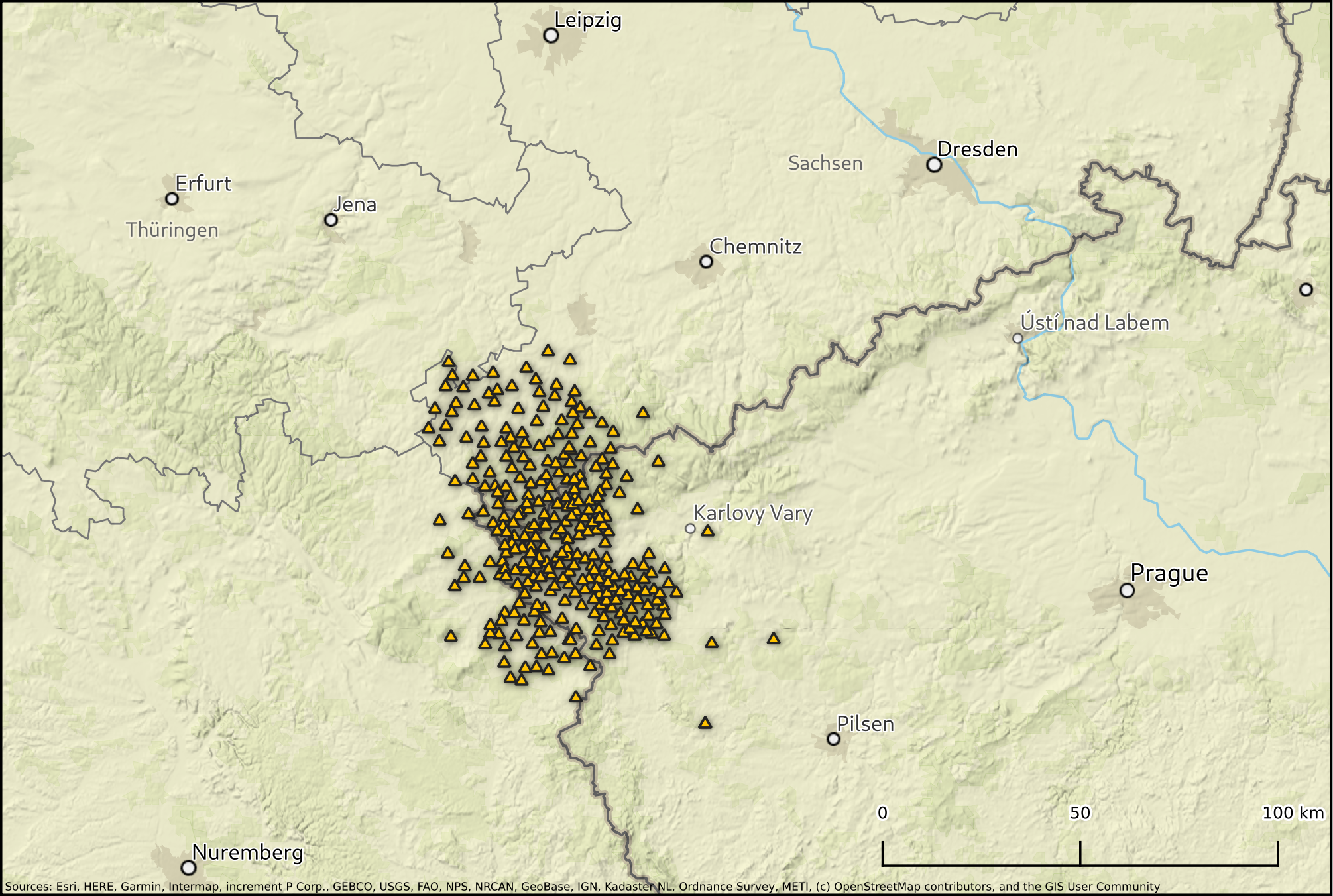 In der deutsch-tschechischen Grenzregion um das Egerbecken (Vogtland und Nordwestböhmen) treten seit Jahrhunderten Erdbebenschwärme auf. Dieses ungewöhnliche Phänomen liegt weit entfernt von tektonischen Plattengrenzen und aktiven Vulkansystemen. Dabei treten über einen Zeitraum von mehreren Wochen und Monaten tausende kleine Mikrobeben in hoher Intensität auf, ohne dass es zu einem starken Hauptbeben kommt.