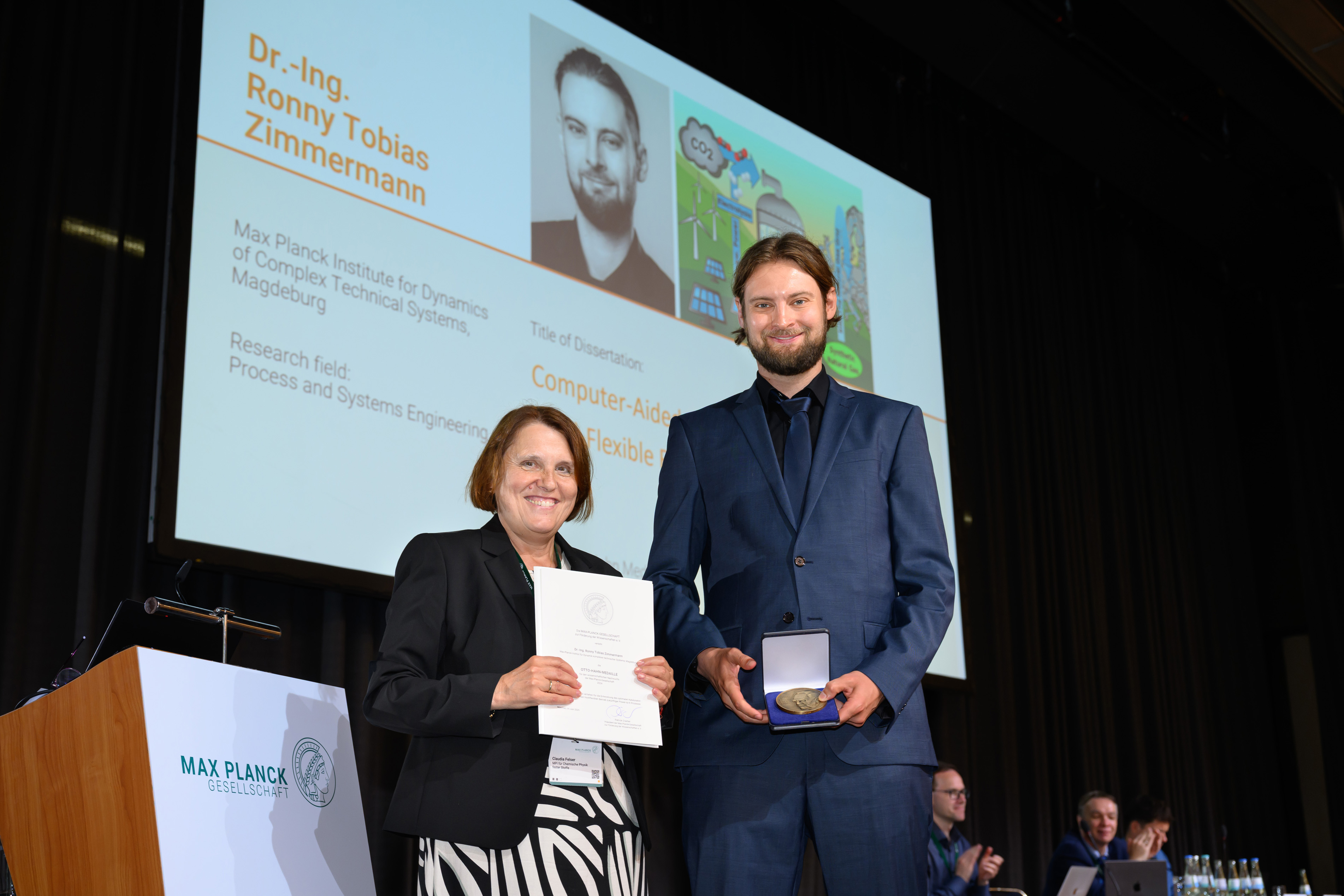 Dr.-Ing. Ronny Tobias Zimmermann, team leader in the Process Systems Engineering research group, was awarded the Otto Hahn Medal of the Max Planck Society on June 25, 2025. He was honored for his research work in the field of reactor and catalyst pellet design for load-flexible chemical energy storage using Power-to-X processes.