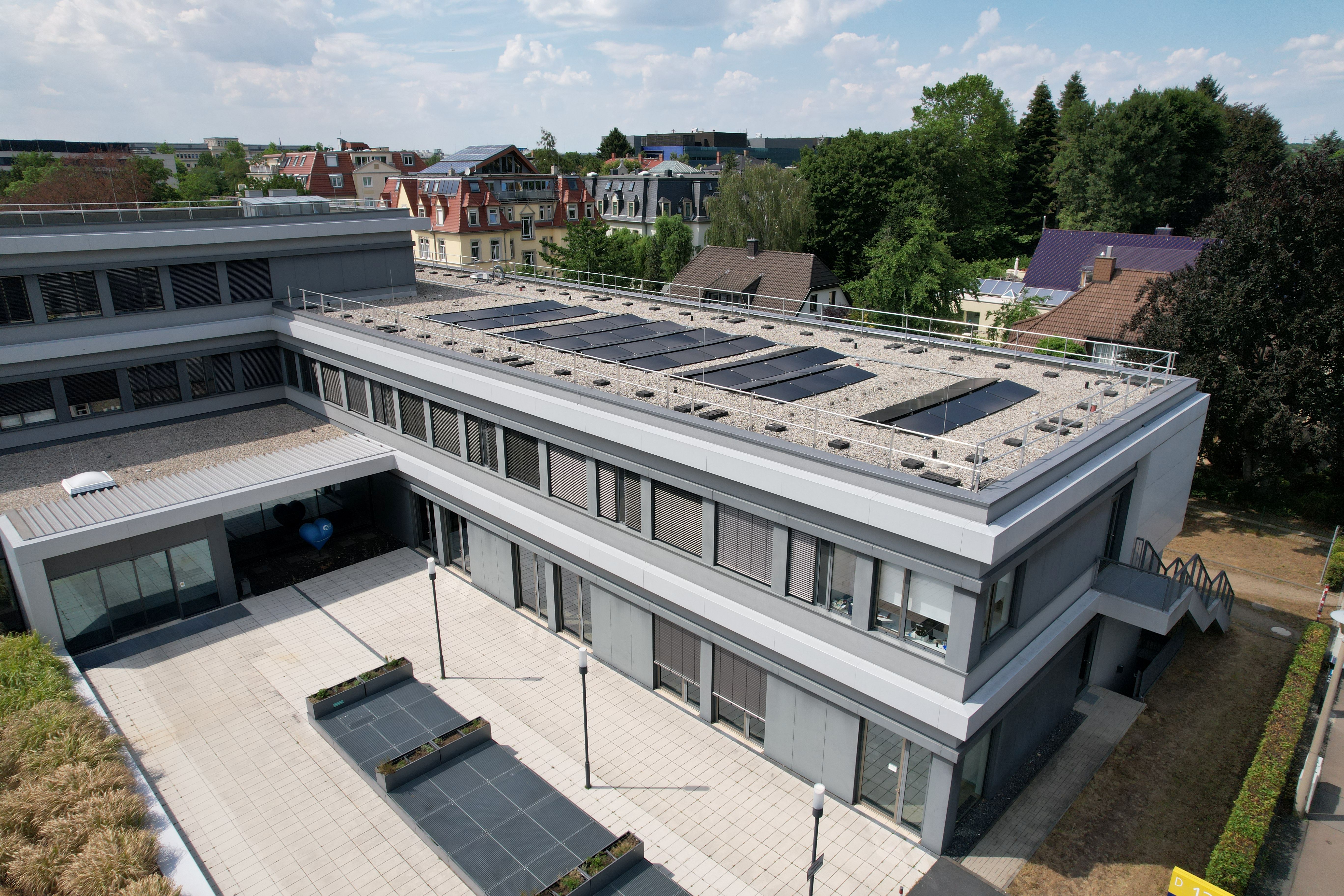 Uniklinikum Dresden nimmt eine weitere Photovoltaikanlage in Betrieb. | Anlage auf Haus 130 speist Energie direkt in den Stromkreislauf des OncoRay ein. | Energiemanagement definiert Flächen im Klinikum, um weitere PV-Anlagen zu errichten.