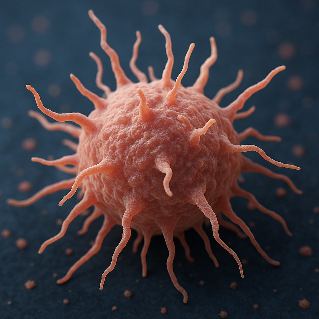 Bild 2: Computervisualisierung einer Makrophage mit ihren charakteristischen „Tentakeln“, die sie zur Wahrnehmung ihrer Umwelt, zur Fortbewegung und zur Bekämpfung von Krankheitserregern einsetzt