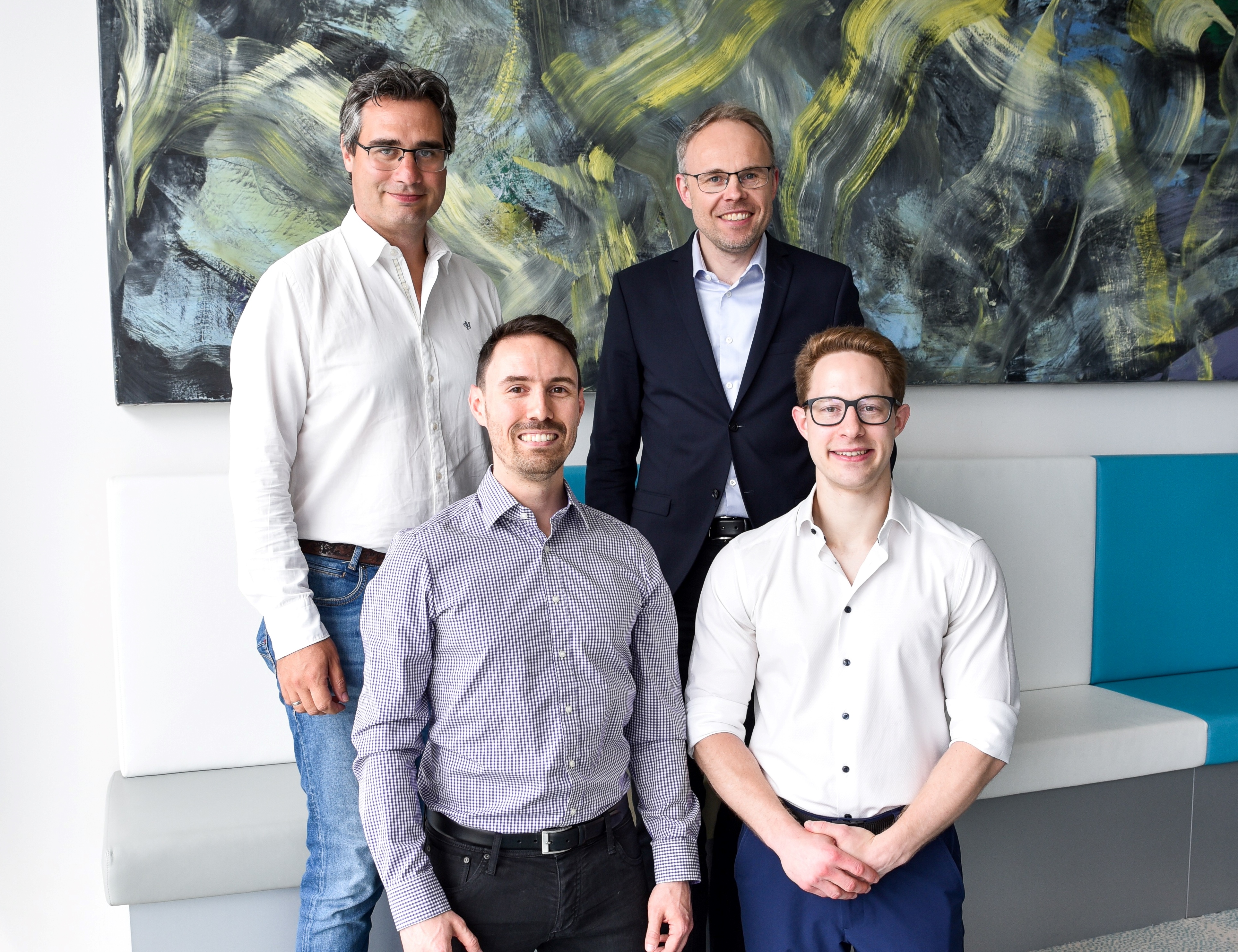 Bild 3: Die Erstautoren Peter Traxler und Stephan Reichl (vorne) und Letztautoren Matthias Farlik und Christoph Bock (hinten) dieser Studie (© CeMM / Laura Alvarez)