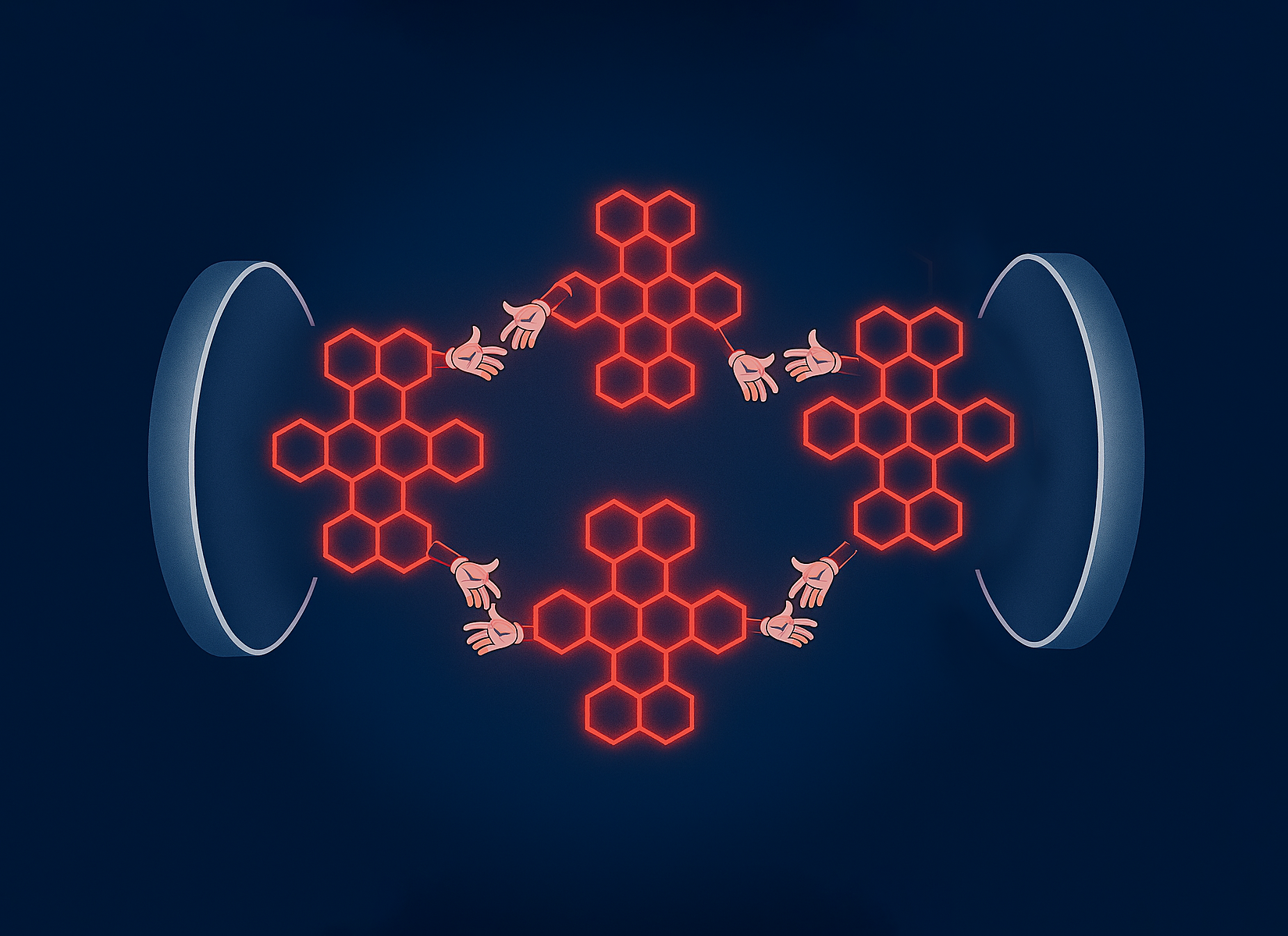 Wechselwirkungen zwischen Atomen und Molekülen werden durch elektromagnetische Felder ermöglicht. Je größer der Abstand zwischen den beteiligten Partnern ist, desto schwächer sind diese gegenseitigen Wechselwirkungen. Um natürliche chemische Bindungen eingehen zu können, beträgt der Abstand der beteiligten Atome normalerweise etwa deren Durchmesser. Mithilfe eines optischen Resonators, der das Quantenvakuum stark verändert, ist es Wissenschaftler*innen des Max-Planck-Instituts für die Physik des Lichts (MPL) erstmals gelungen, mehrere Moleküle auf größere Entfernung miteinander optisch zu ‚binden‘.