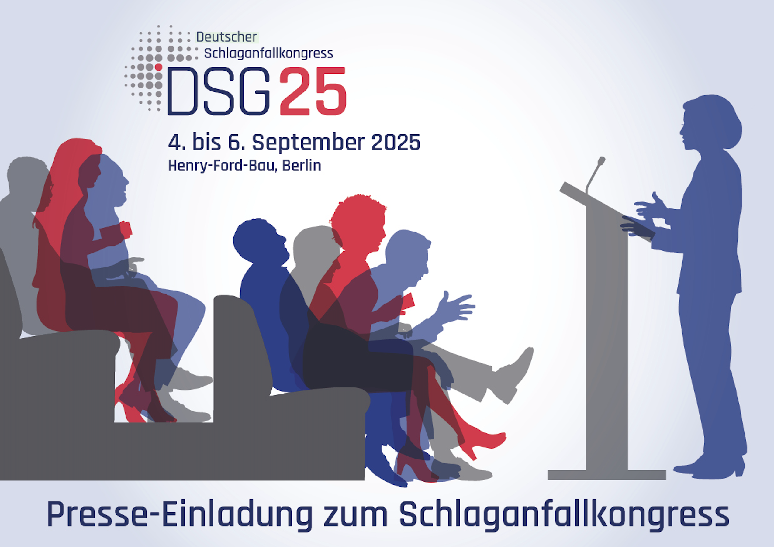 Wir laden Sie herzlich zum 1. Deutschen Schlaganfallkongress, dem DSG25 ein, der in weniger als drei Wochen, vom 04. bis 06. September, in Berlin stattfinden wird. Merken Sie sich diesen Präsenz-Termin jetzt schon vor und planen Sie Ihre Berichterstattung. Das Besondere: Bei diesem Kongress kommen erstmalig in Deutschland alle Beteiligte rund um die Versorgung eines Schlaganfall-Patienten zusammen, angefangen vom Notfallsanitäter über den Neuroradiologen, den Neurologen, die Fachpflegekräfte der Stroke Unit, den Neurochirurgen bis hin zum nachsorgenden Physiotherapeuten. Erwartet werden rund 900 bis 1.000 Teilnehmende.