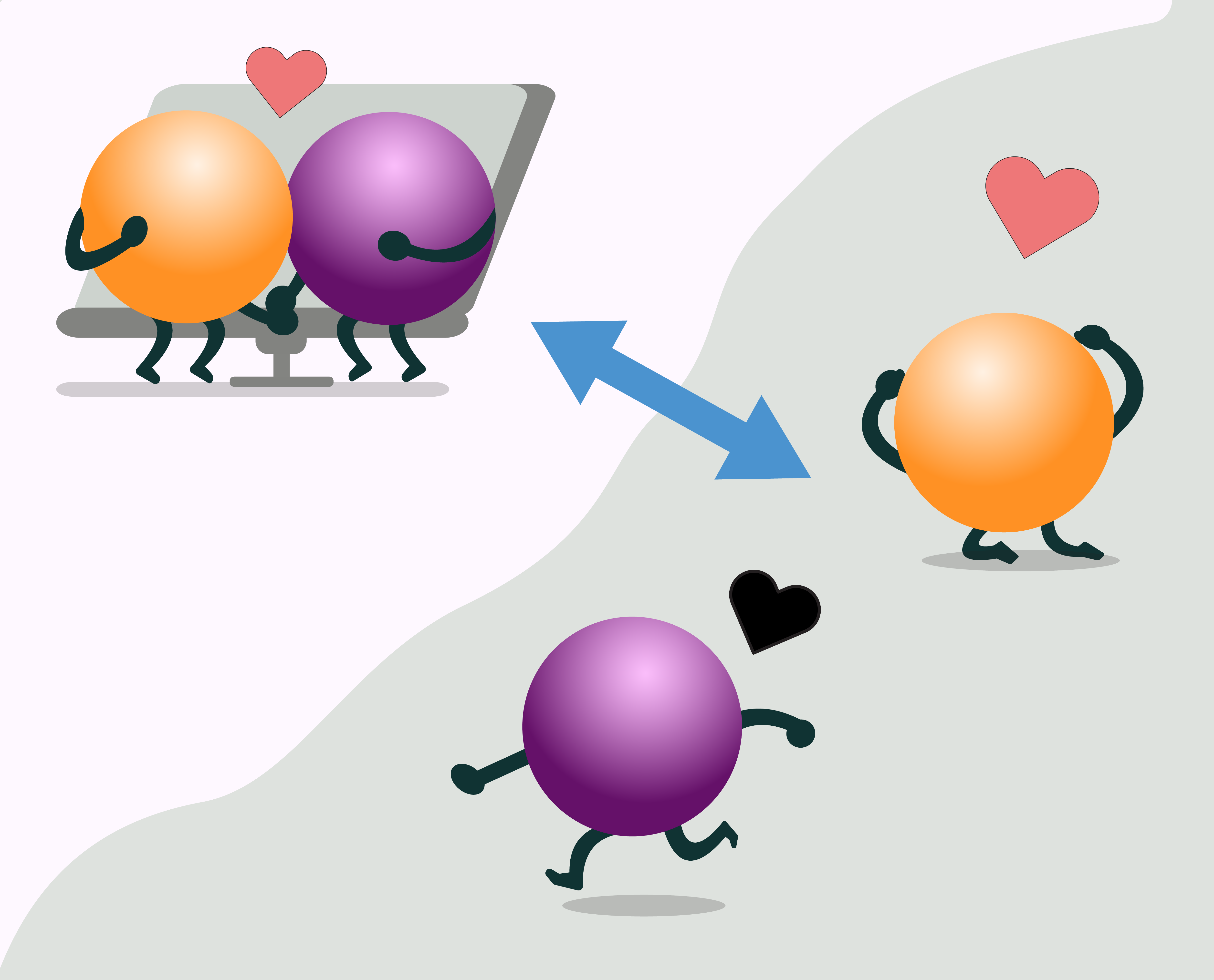 Suropriya Saha und Ramin Golestanian aus der Abteilung Physik lebender Materie am MPI-DS haben nun das Modell der nicht-reziproken Wechselwirkungen erweitert. Sie untersuchten die Auswirkungen auf das System, wenn die Rolle der beiden Molekülarten nicht linear ist. „Wenn wir Nichtlinearität in das System einführen, verhält es sich dynamisch und unvorhersehbar“, erklärt Saha, Erstautorin der Studie. „Das bedeutet, dass sich die Rollen von Molekül A und B umkehren können, wodurch sich auch ihre Rollen in der Verfolgungsdynamik spontan ändern – oder auch ein reziprokes Verhalten eintreten kann. Nichtlinearitäten treten häufig in natürlichen Systemen auf und führen zu einem umfassenderen Modell, das lebende Materie beschreibt“, fährt sie fort.