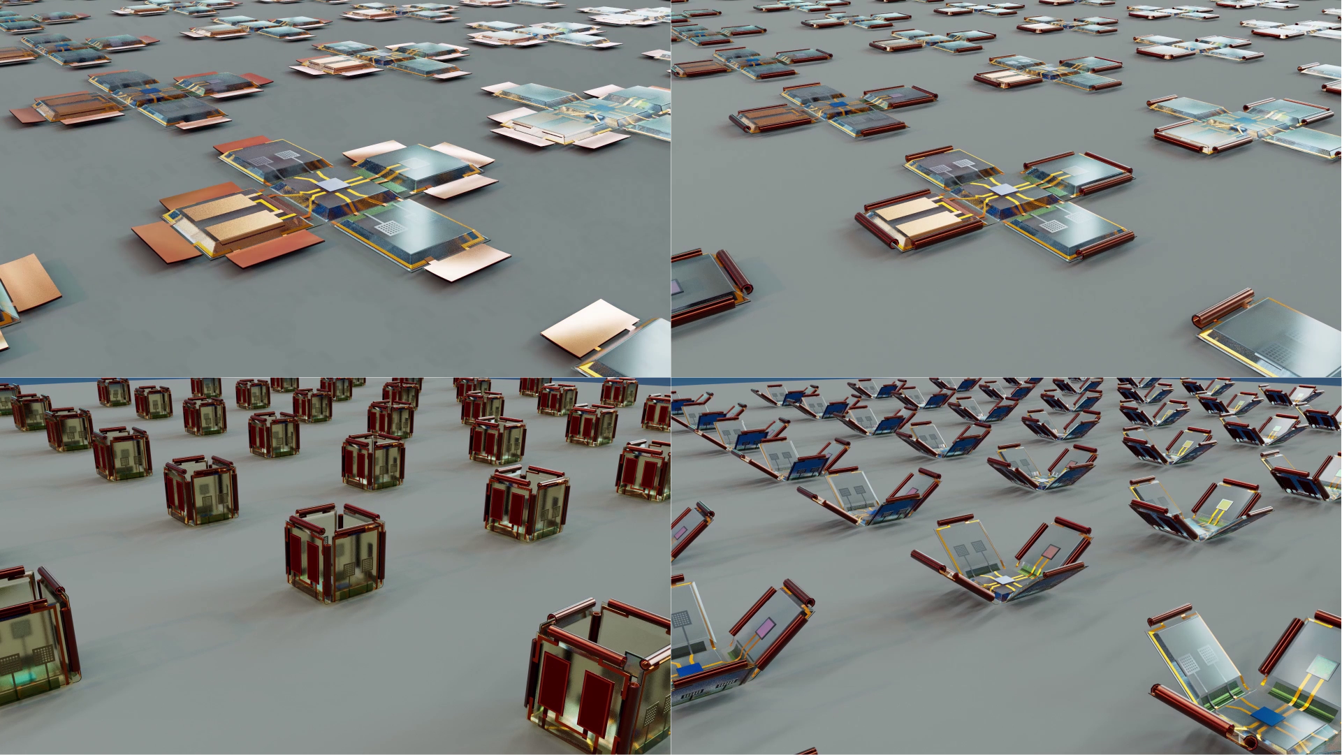 The microrobots are built using a flexible origami-inspired approach, based on smart multilayer patterned materials, allowing the flat electronic system to roll and fold up autonomously into a tiny scroll-adorned hollow 3D cube, with interior as well as exterior functionality. This opens up the extra surface space needed for each cube to carry its own solar energy harvester, computational logic, and an optical signaling system, in addition to interacting external faces and inboard locomotion. When immersed in water, these smartlets can move up and down by buoyancy forces created by bubble generating engines that fill the hollow interior of the smartlet with gas. They can also emit pulses of optical signals to broadcast instructions to other smartlets nearby. This setup enables multi-robotic interactions in water, including stimulus-driven movement, synchronization, and coordination among multiple smartlets. For example, when one unit receives a light signal, it can decode the information using its onboard processor, triggering a coordinated motion or behavior in others. “The idea of using light as both energy and information opens up a compact and scalable way to create distributed robotic systems,” adds Dr. Vineeth Bandari, co-corresponding author and research group leader at MAIN.