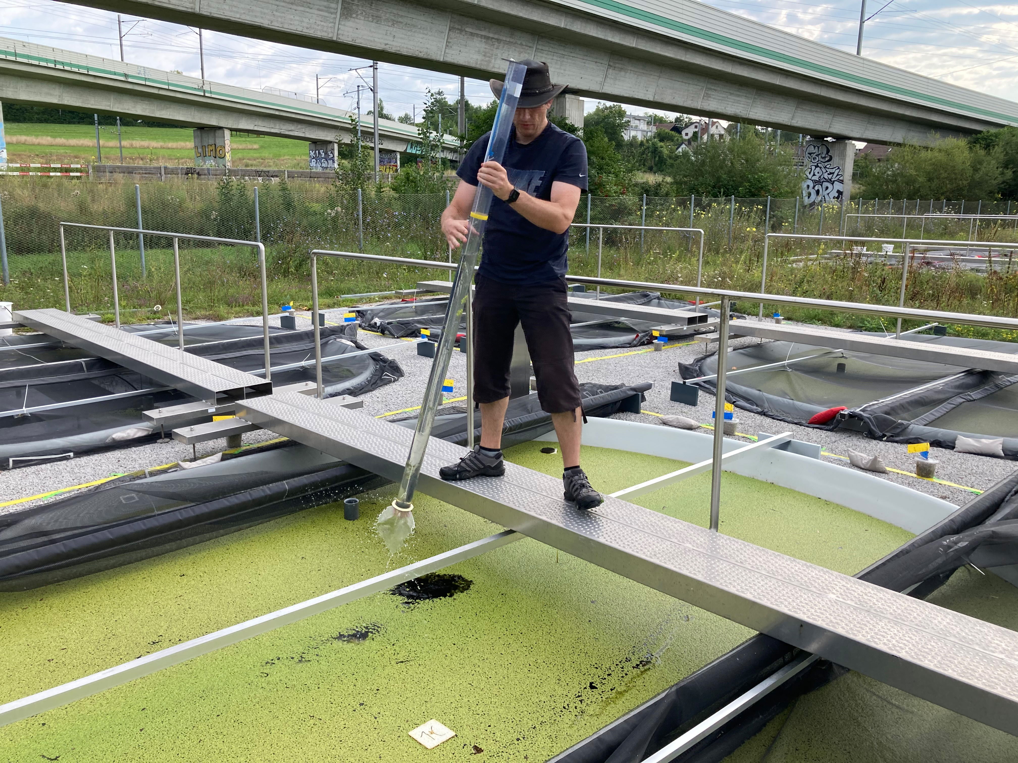 Für ihre Untersuchungen nutzten die Forschenden verschiedene künstliche Teiche in der Versuchsteichanlage der Eawag, die jeweils 15.000 Liter Wasser enthielten. In der Luft darüber schwirrten Blattläuse, die sich von Wasserlinsen – auch als Entengrütze bekannt – ernährten. Je stärker sie die Entengrütze befielen, umso schlechter vermehrte sich diese, desto mehr Licht drang in die entsprechenden Teiche und desto besser wuchsen mit den Wasserlinsen um Licht und Nährstoffe konkurrierende Algen, von denen sich wiederum die Wasserflöhe im Wasser ernährten. „Die Blattläuse und die Wasserflöhe leben in unterschiedlichen Lebensräumen, doch beeinflussen sich ihre Interaktionsketten gegenseitig“, erklärt Prof. Xu.