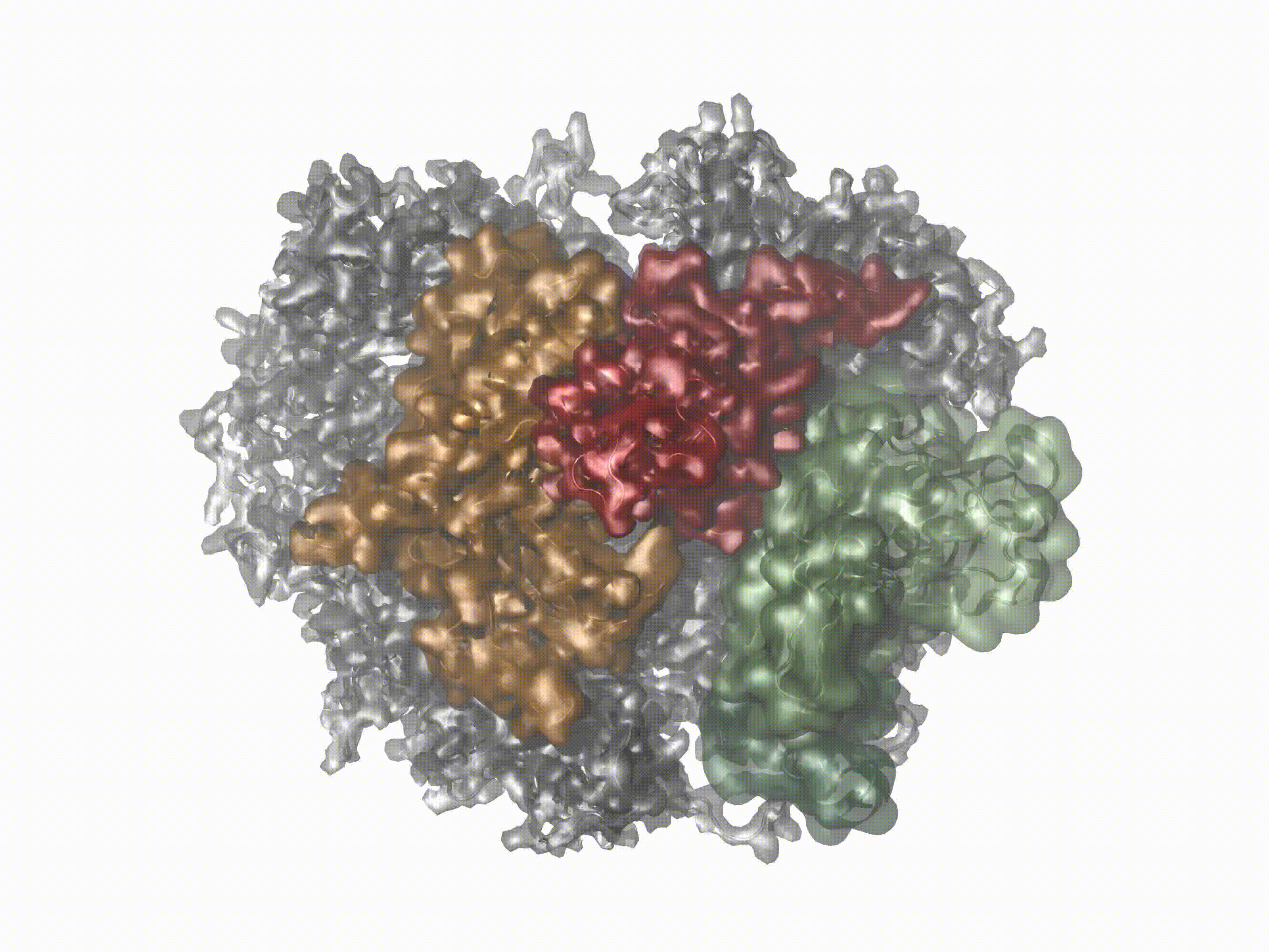 Proteine sind die Alleskönner in den Zellen jedes Lebewesens und die Grundlage jeglichen Lebens. Häufig formen mehrere Proteine größere Komplexe, die als molekulare Maschinen vielfältige lebenswichtige Aufgaben durchführen. Zum Beispiel bauen diese Komplexe lebensnotwendige Moleküle zusammen und zerlegen sie wieder, wenn sie nicht länger benötigt werden. Andere Komplexe transportieren oder sortieren Biomoleküle, oder sie senden Nachrichten und empfangen sie. Um zu verstehen, wie diese Proteinkomplexe ihre Funktionen erledigen, muss man verstehen, wie sie aussehen. In den letzten Jahrzehnten haben Forschende die dreidimensionale (3D) Struktur einer Vielzahl von Proteinen aufgeklärt. Die Universität Regensburg verfügt über ein eigenes hochauflösendes Kryo-Elektronenmikroskop, das für diese Zwecke eingesetzt wird. Dieses Mikroskop wurde in der aktuellen Studie verwendet, um die statische Struktur einer molekularen Maschine aufzuklären.