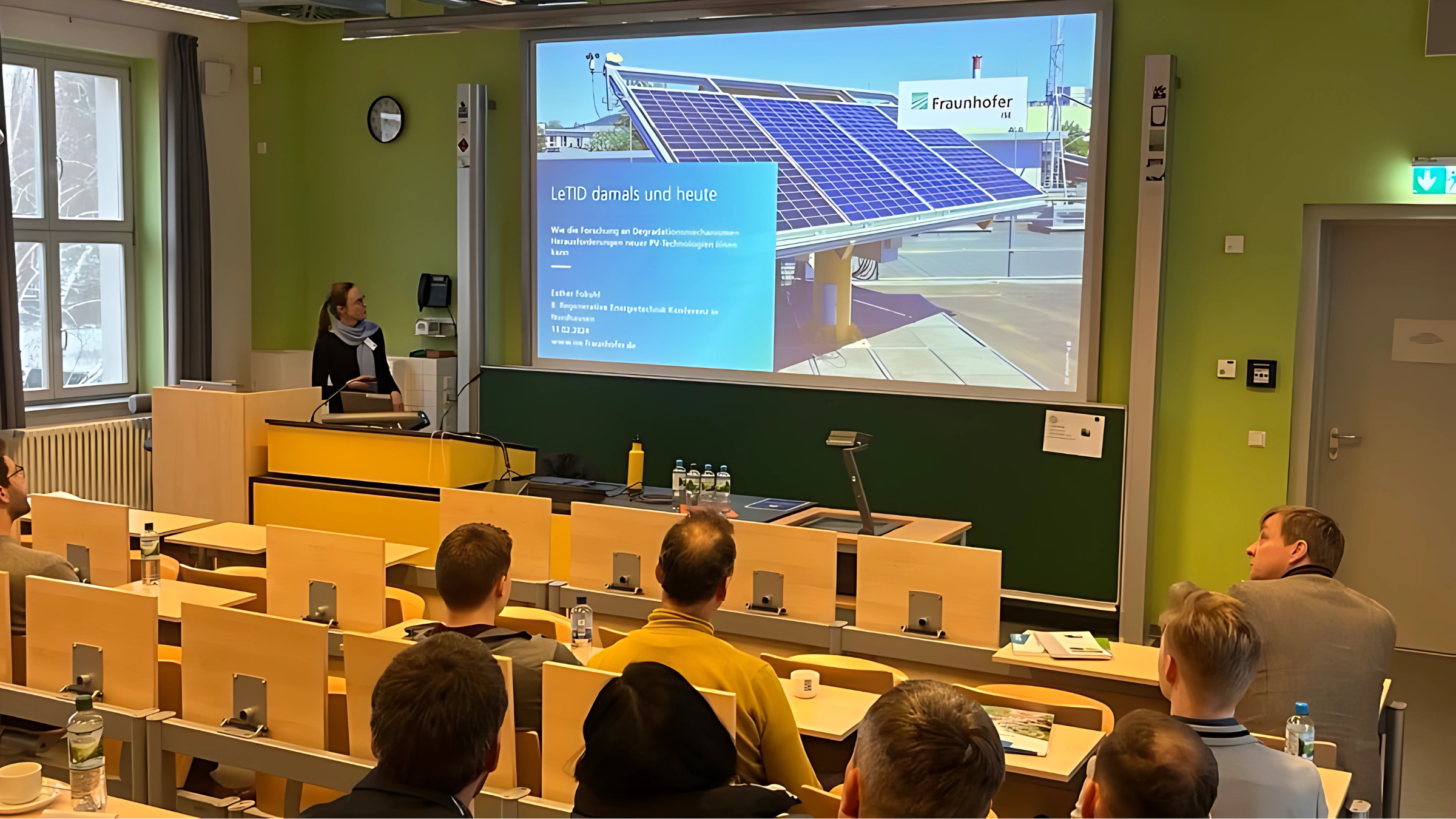 Im Rahmen ihrer Arbeit, die durch eine Zusammenarbeit der Hochschule Nordhausen, der Technischen Universität Dresden und dem Fraunhofer Institut für Solar Energiesysteme in Freiburg möglich wurde, hat sich Frau Dr.-Ing. Esther Fokuhl auf das lichtinduzierte Degradationsverhalten von kristallinen Silizium Solarzellen konzentriert. Es gelang ihr dabei ein grundlegendes Verständnis für den Ablauf des Degradationsverhaltes zu entwickeln und experimentell zu verifizieren. Die Ergebnisse ihrer Arbeit haben wesentliche Auswirkung auf die Gestaltung und Durchführung von Prüfnormen.